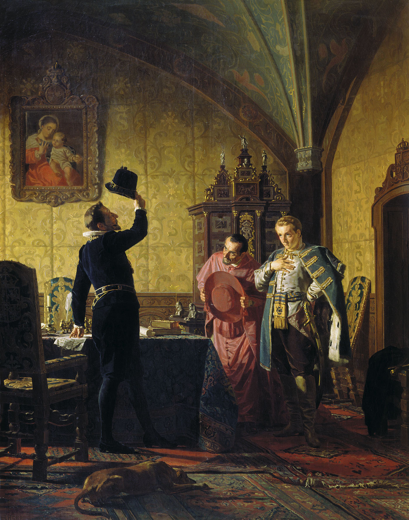 Присяга Лжедмитрия I польскому королю Сигизмунду III на введение в России католицизма. Н. Неврев. 1874 год. Саратовский государственный художественный музей им. А.Н. Радищева, Саратов