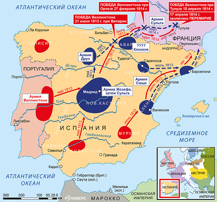 Действия в Испании и на юге Франции, май 1813 – апрель 1814 г.