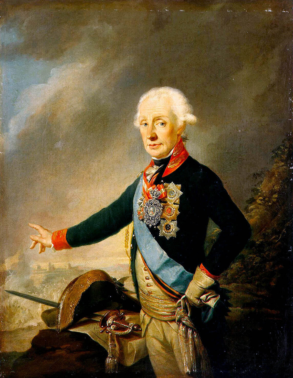Суворов Александр Васильевич (1729—1800) — великий русский полководец, один из основоположников русского военного искусства, князь Италийский (1799), граф Рымникский (1789) и Священной Римской империи, генералиссимус российских сухопутных и морских сил