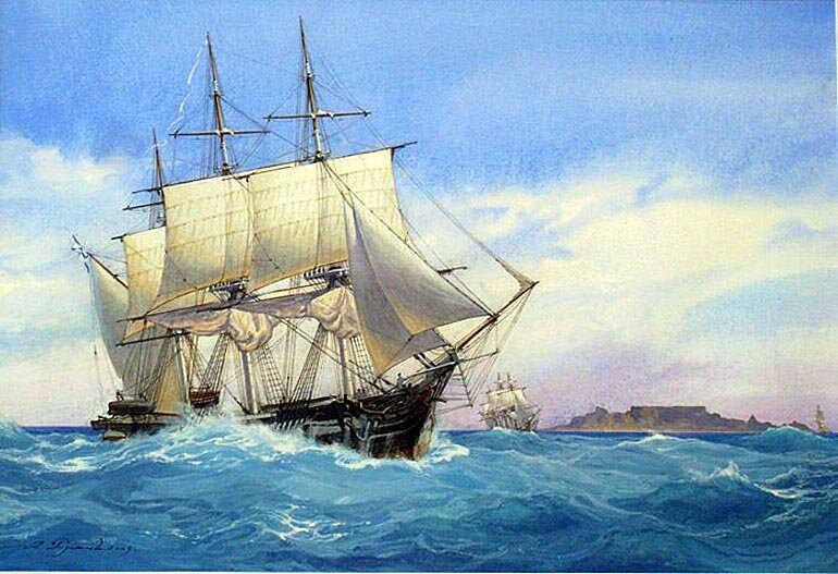 Шлюпы «Открытие» и «Благонамеренный» у мыса Доброй Надежды