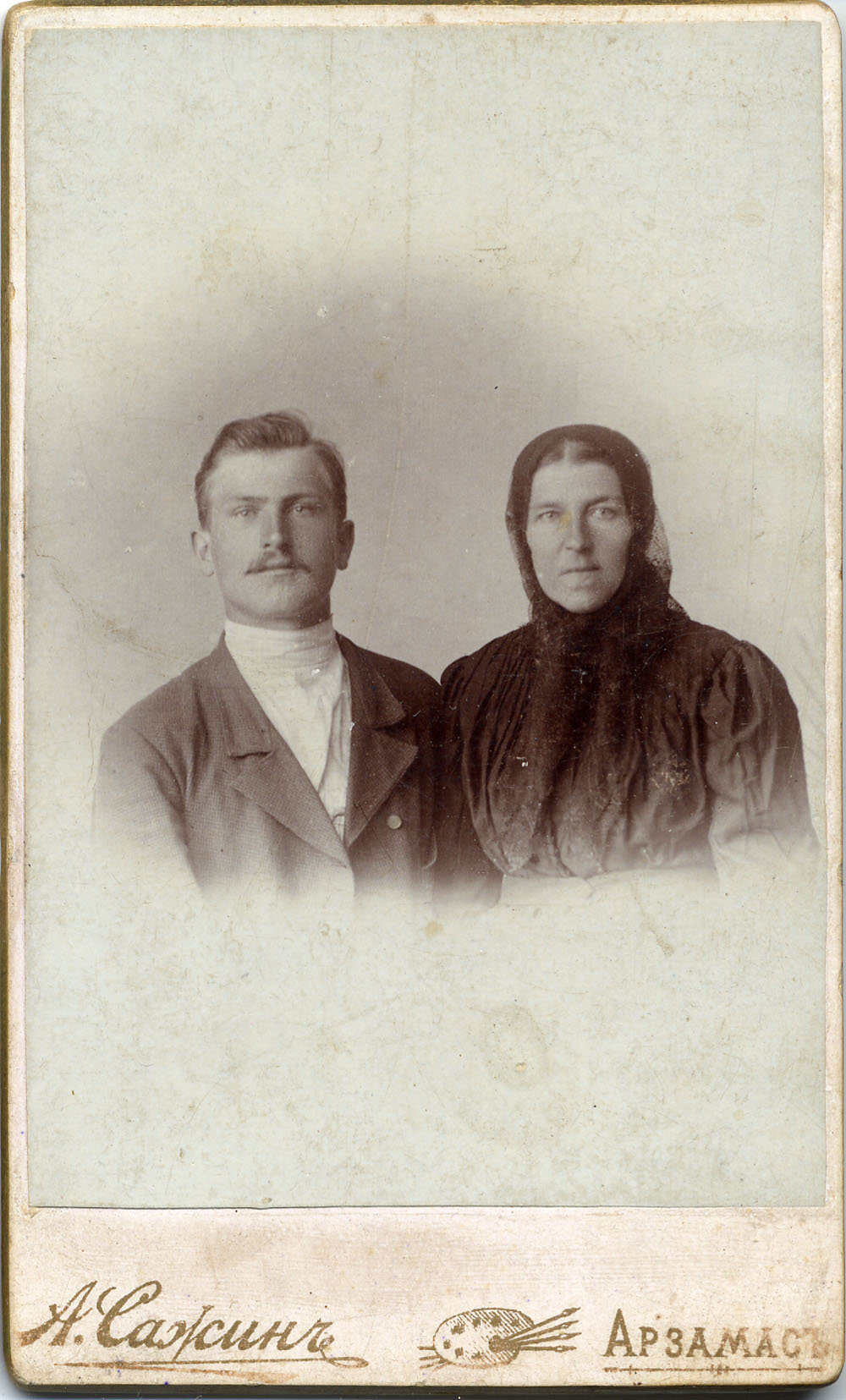 Фотограф Л.Н. Сажин, Арзамас. Фотопортрет супругов Козиных. 1890-е г.