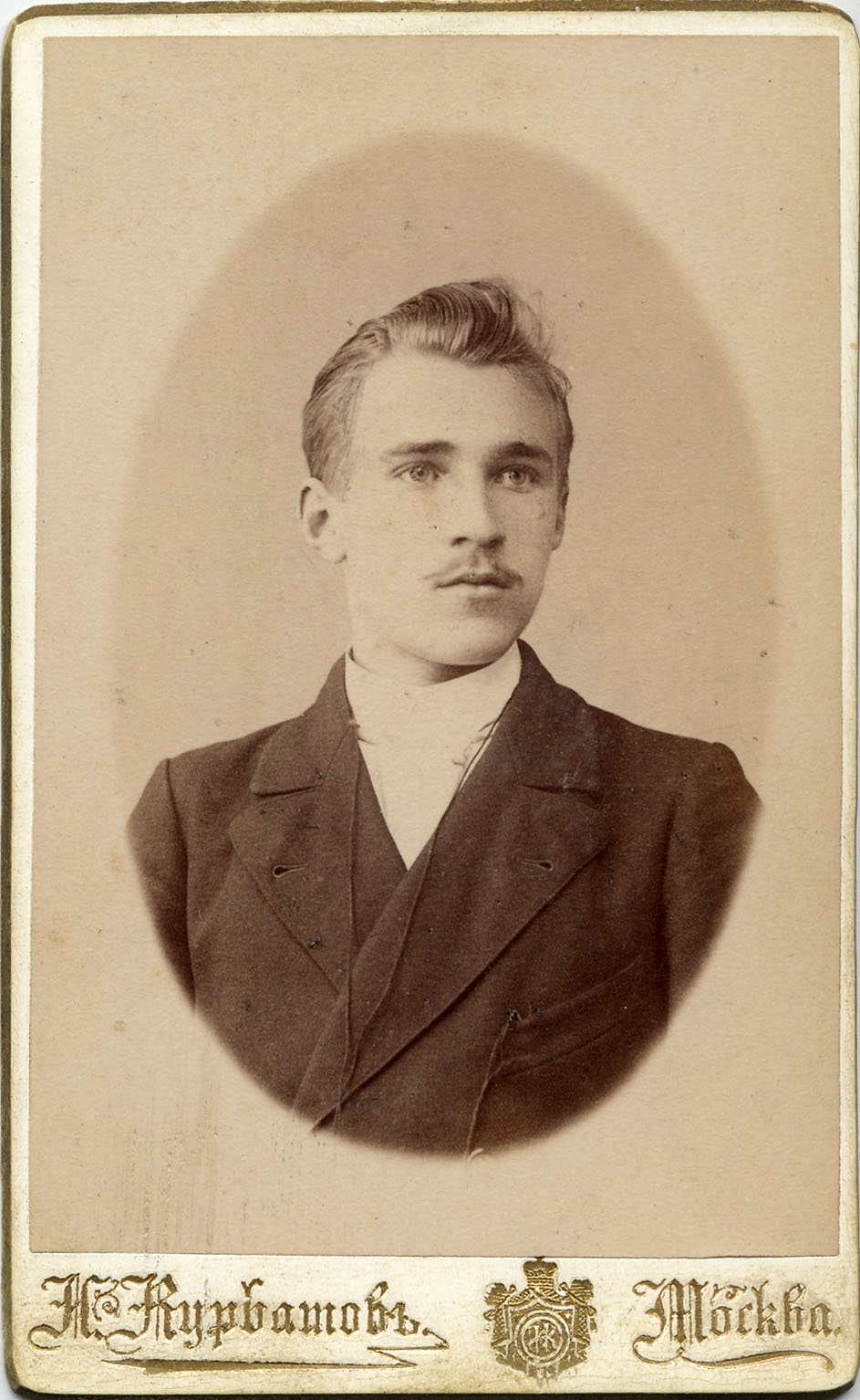 Фотограф И.Ф. Курбатов, Москва. Портрет Александра Ростоцкого. На обороте надпись: “Дорогому и незабвенному Папаше на добрую память от Сына Александра Ростоцкого. 10 апреля 1896 года”.