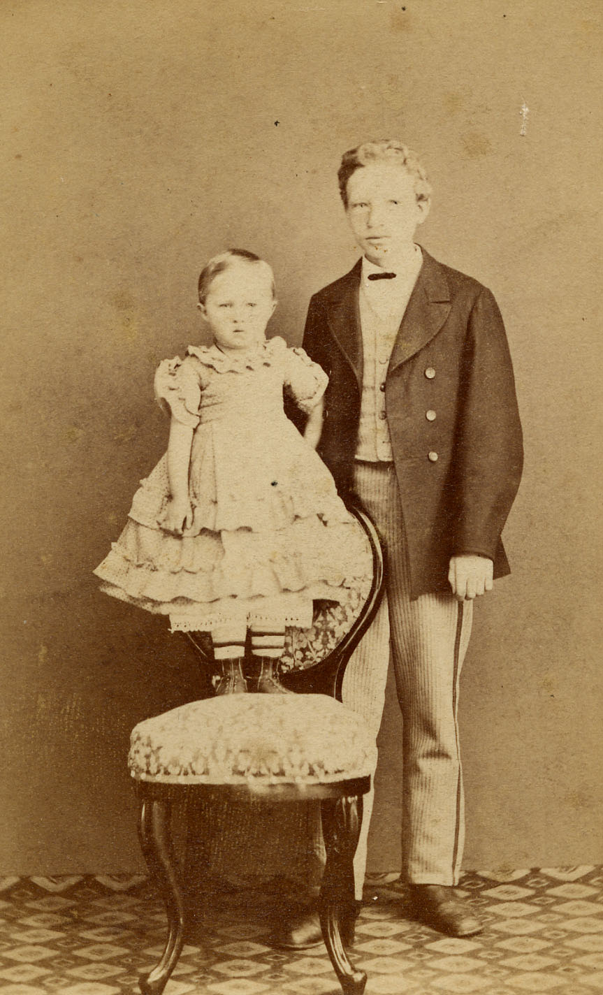 Неизвестный фотограф. Портрет двух детей – мальчика-поростка и девочки лет двух. 1880-е г.