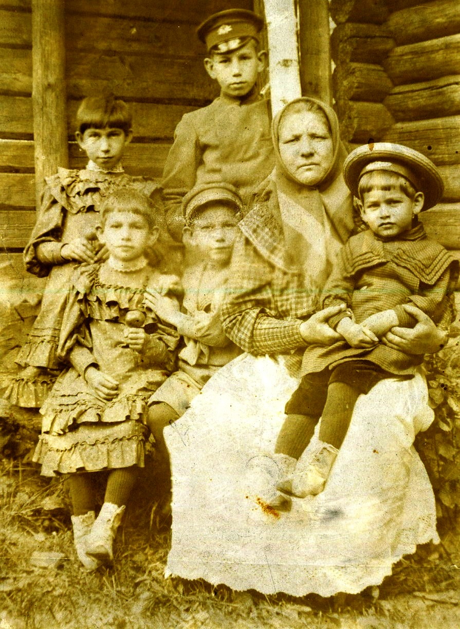 Портрет няни купцов Дегтяревых с детьми во дворе дома. Муром.