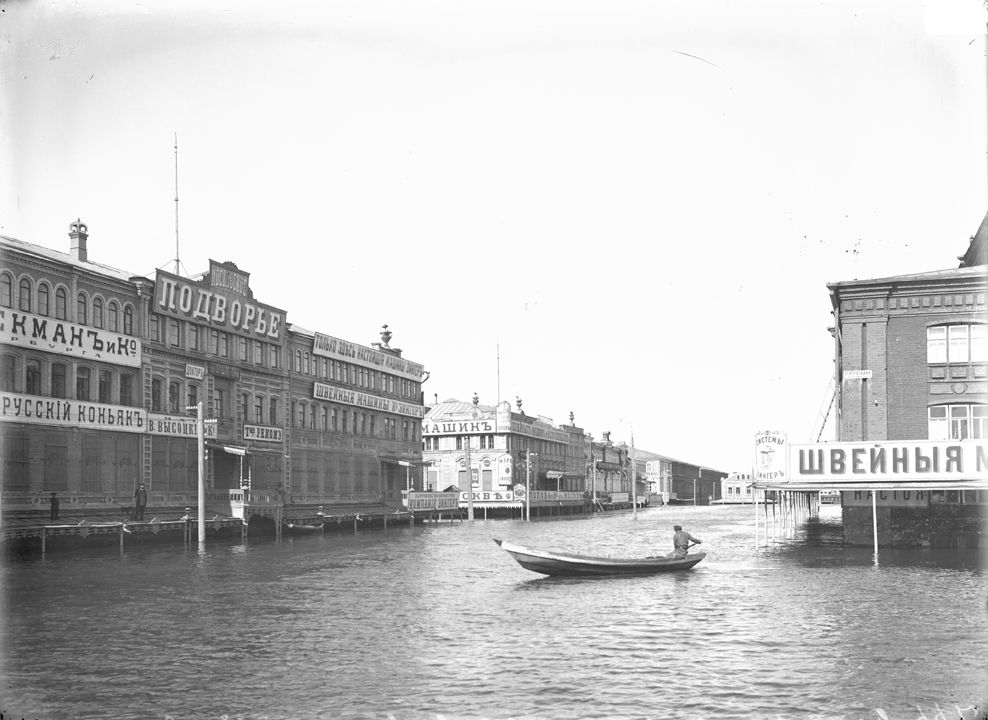 Нижегородская ярмарка во время половодья. Вид на Театральную площадь. Нижний Новгород.