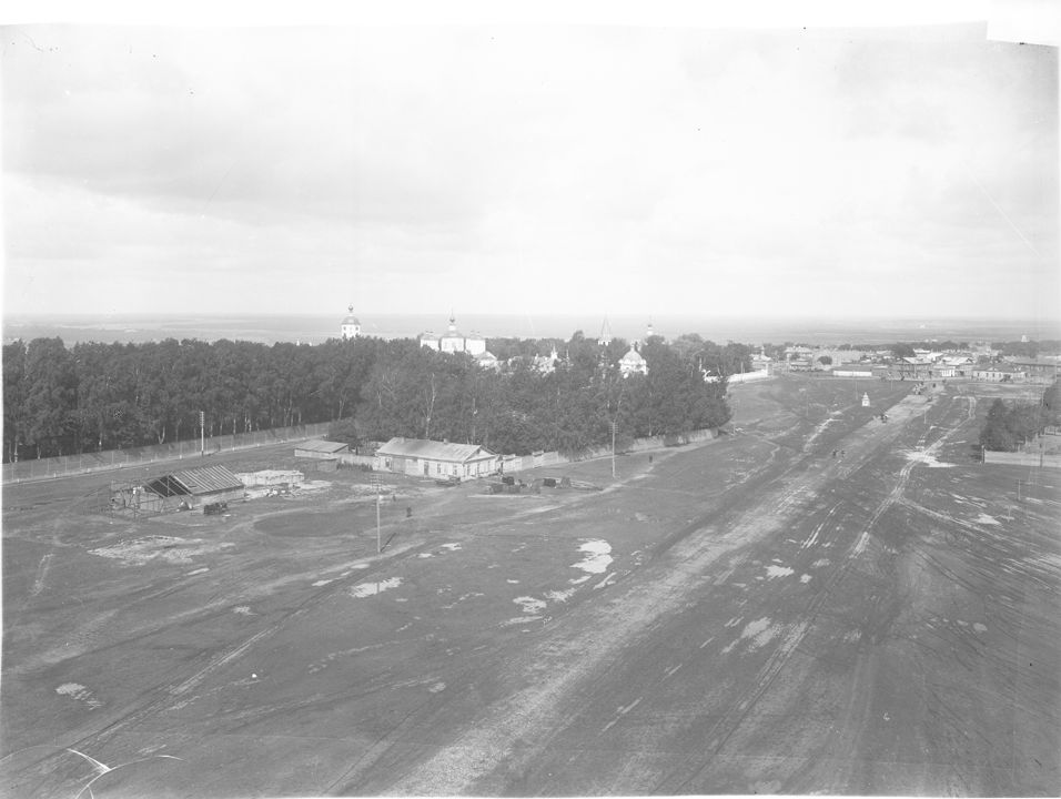 Общий вид с водонапорной башни на Арзамасский тракт. В центре Крестовоздвиженский женский монастырь. Дата: к. ХIХ – н. ХХ вв.Автор: М.П. Дмитриев Место события: г. Арзамас