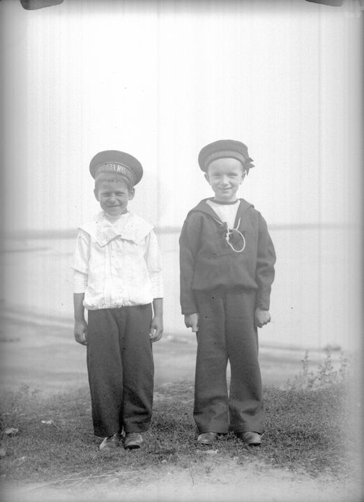 Портрет двух мальчиков 7-8 лет. На бескозырках - надпись «Школа Юнгов». Автор: В.А. Зевеке Место события: неизвестно Дата: 1915-1916 гг.