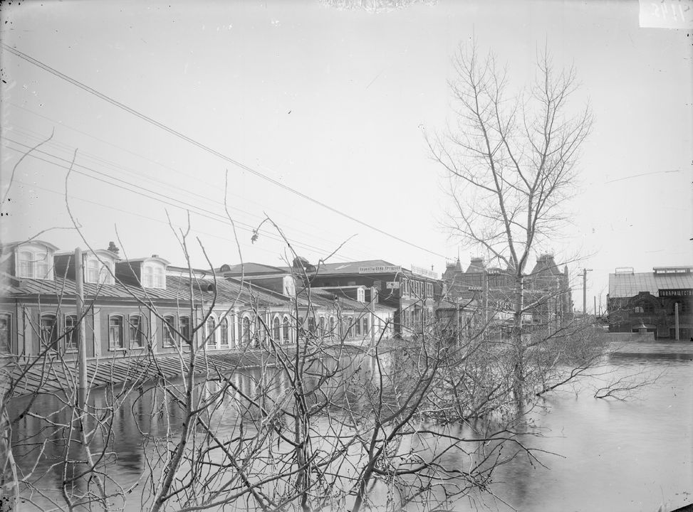 Нижегородская ярмарка во время половодья. Вид на Театральную площадь. Нижний Новгород.