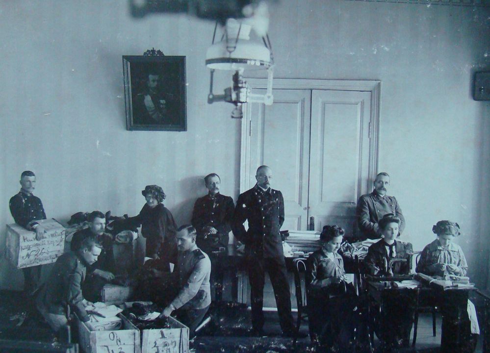 Мастерская местного отделения Ардатовского общества «Красного креста». Автор: С. Тимин Место события: Ардатов Дата: 1915 г.