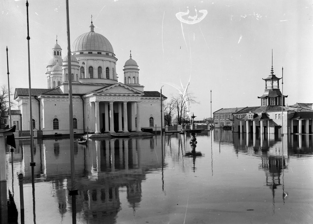 Нижегородская ярмарка во время половодья. Вид на Театральную площадь. Нижний Новгород.