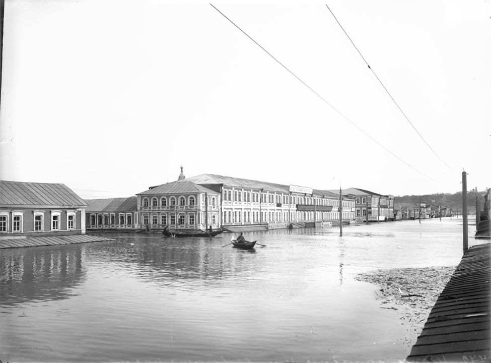 Нижегородская ярмарка во время половодья. Вид на Нижегородскую улицу. Дата: к. ХIХ в. – н. ХХ вв. Автор: М.П. Дмитриев Место съемки: г. Н.Новгород