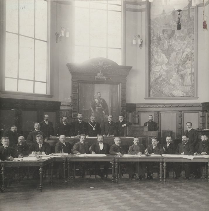 Группа представителей Нижегородской городской управы с городским головой Меморским. Дата: 1905-1906 гг. Место съемки: г. Н.Новгород Автор: М.П. Дмитриев