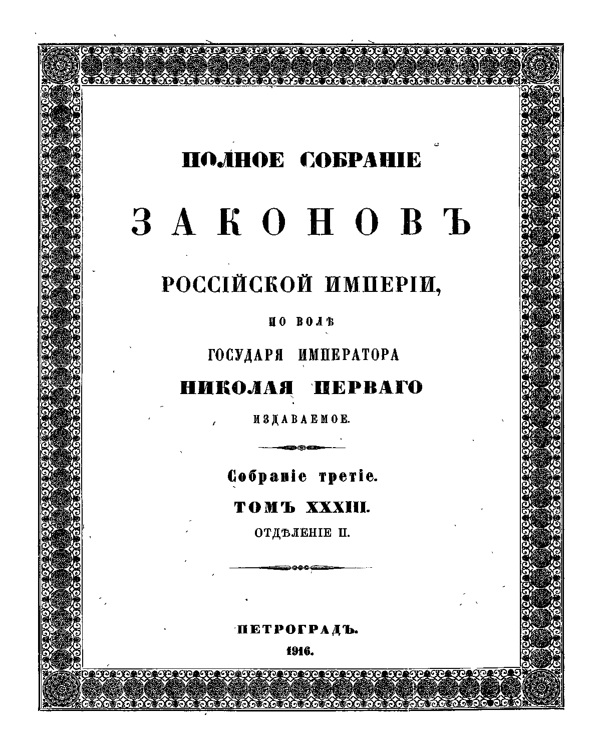 Полное собрание законов Российской Империи. Собрание Третье. Том XXXIII. Отделение 2