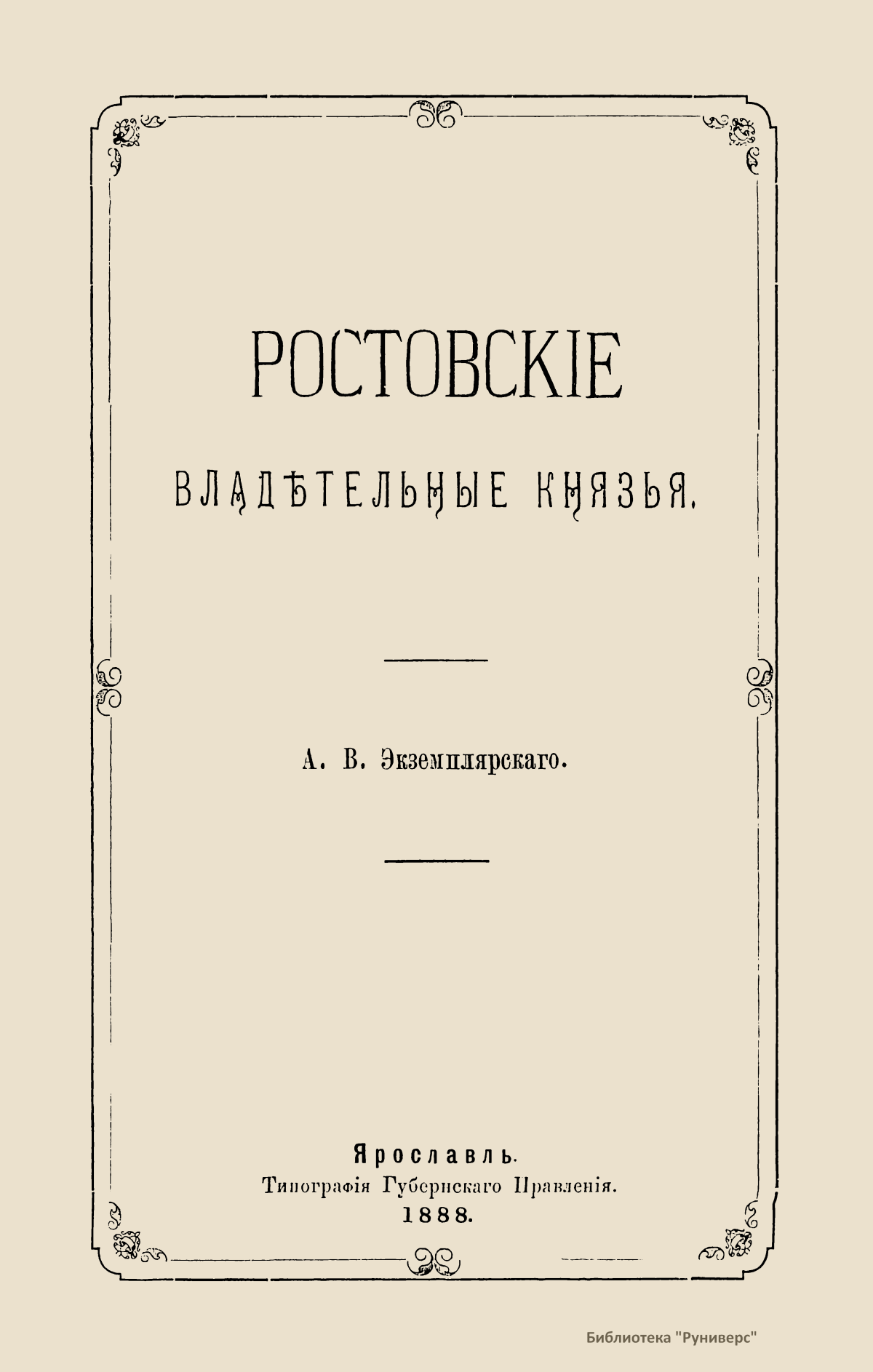 Исследование знаменитого специалиста по древней генеалогии о владетельных князьях Ростова Великого, с подробными биографиями оных.