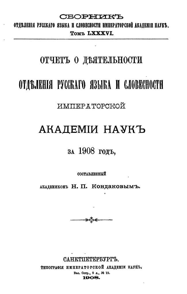 Сборник отделения русского языка и словесности Императорской Академии наук. Выпуск 86