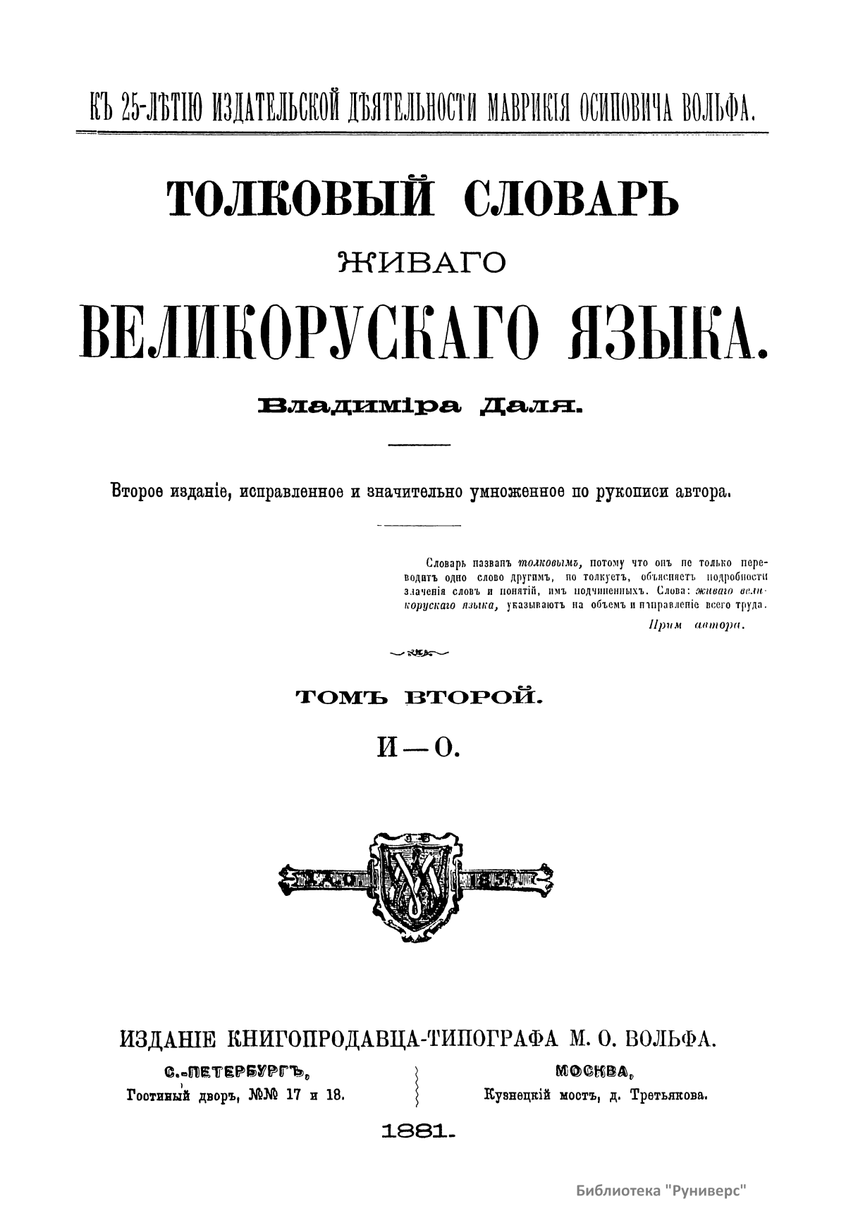 Толковый словарь живаго великорускаго языка. Томъ второй. И — О