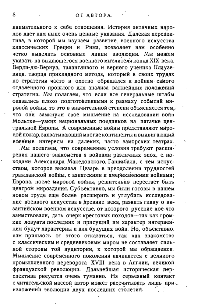 Работа рассматривает полководческое искусство классиков и средневековья, а также затрагивает вопросы истории военного искусства в России.