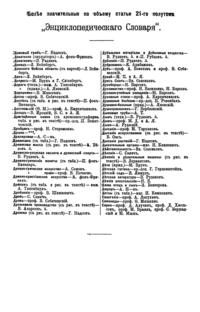 Самая крупная дореволюционная русская универсальная энциклопедия, выпущенная акционерным издательским обществом «Ф. А. Брокгауз — И. А. Ефрон». Состоит из 86 томов (82 основных и 4 дополнительных), выходивших в течение 1890-1907 годов. Первые 8 томов (до буквы «В») вышли под общей редакцией профессора И. Е. Андреевского и в основном содержали переводы на русский язык статей знаменитой немецкой энциклопедии Брокгауза «Konversations Lexikon».