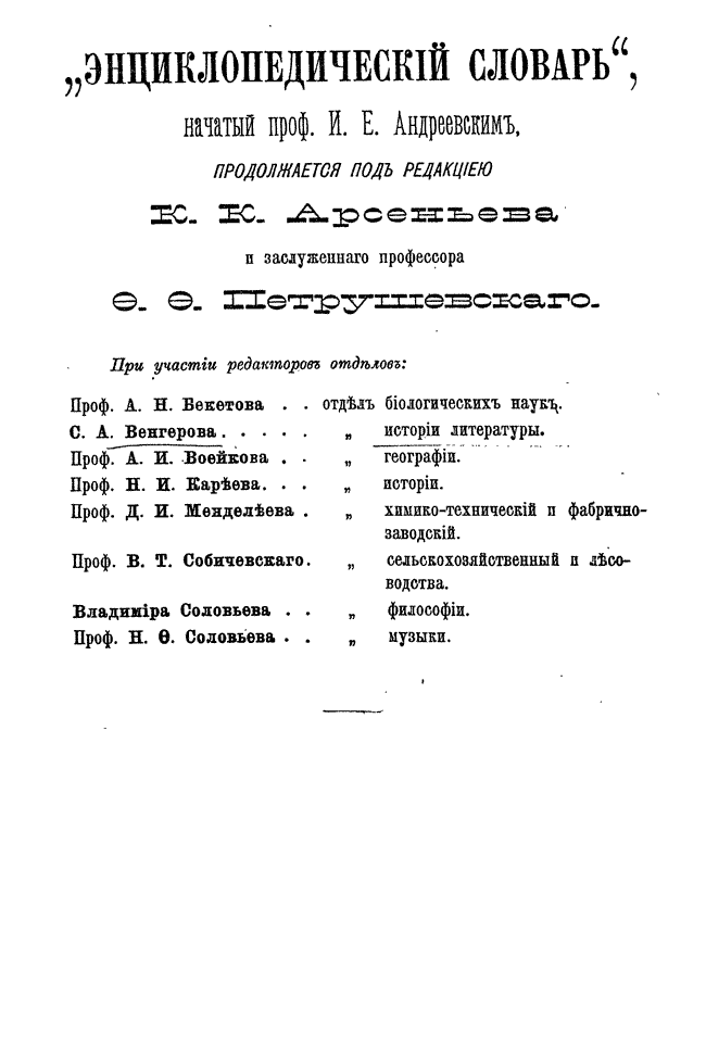 После кончины Андреевского новая редакция во главе с К. К. Арсеньевым и Ф. Ф. Петрушевским значительно увеличила число оригинальных статей и привлекла к сотрудничеству широкий круг общественно-политических деятелей либерального толка (от П. Н. Милюкова, В. И. Герье, Н. И. Кареева до легальных марксистов П. Б. Струве и М. И. Туган-Барановского, раздел философии вел крупнейший русский религиозный философ Вл. С. Соловьев), а также таких крупнейших ученых как Д. И. Менделеев, А. И. Бекетов, А. И. Воейков, Д. И. Анучин, Ю. М. Шокальский, Н. М. Книпович, А. О. Ковалевский, А. И. Советов, В. С. Соловьев и др.