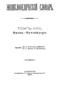 Самая крупная дореволюционная русская универсальная энциклопедия, выпущенная акционерным издательским обществом «Ф. А. Брокгауз — И. А. Ефрон». Состоит из 86 томов (82 основных и 4 дополнительных), выходивших в течение 1890-1907 годов. Первые 8 томов (до буквы «В») вышли под общей редакцией профессора И. Е. Андреевского и в основном содержали переводы на русский язык статей знаменитой немецкой энциклопедии Брокгауза «Konversations Lexikon».