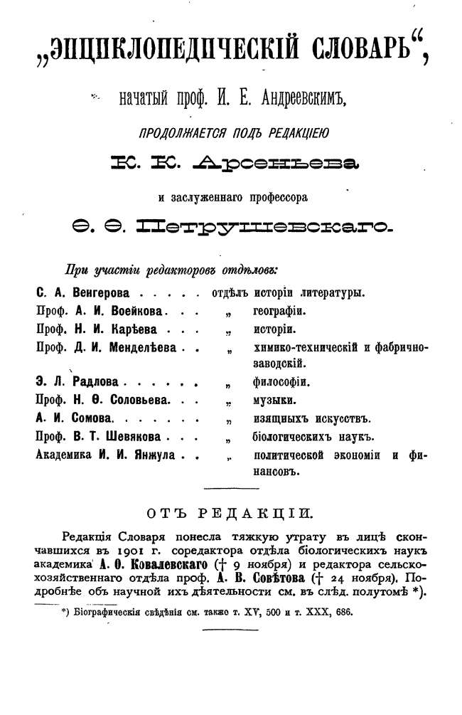 После кончины Андреевского новая редакция во главе с К. К. Арсеньевым и Ф. Ф. Петрушевским значительно увеличила число оригинальных статей и привлекла к сотрудничеству широкий круг общественно-политических деятелей либерального толка (от П. Н. Милюкова, В. И. Герье, Н. И. Кареева до легальных марксистов П. Б. Струве и М. И. Туган-Барановского, раздел философии вел крупнейший русский религиозный философ Вл. С. Соловьев), а также таких крупнейших ученых как Д. И. Менделеев, А. И. Бекетов, А. И. Воейков, Д. И. Анучин, Ю. М. Шокальский, Н. М. Книпович, А. О. Ковалевский, А. И. Советов, В. С. Соловьев и др.