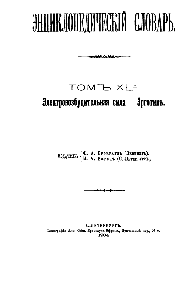 Энциклопедический словарь Брокгауза и Ефрона: Том XLА (80). Электровозбудительная сила — Эрготин