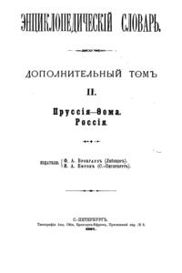 Самая крупная дореволюционная русская универсальная энциклопедия, выпущенная акционерным издательским обществом «Ф. А. Брокгауз — И. А. Ефрон». Состоит из 86 томов (82 основных и 4 дополнительных), выходивших в течение 1890-1907 годов. Первые 8 томов (до буквы «В») вышли под общей редакцией профессора И. Е. Андреевского и в основном содержали переводы на русский язык статей знаменитой немецкой энциклопедии Брокгауза «Konversations Lexikon».