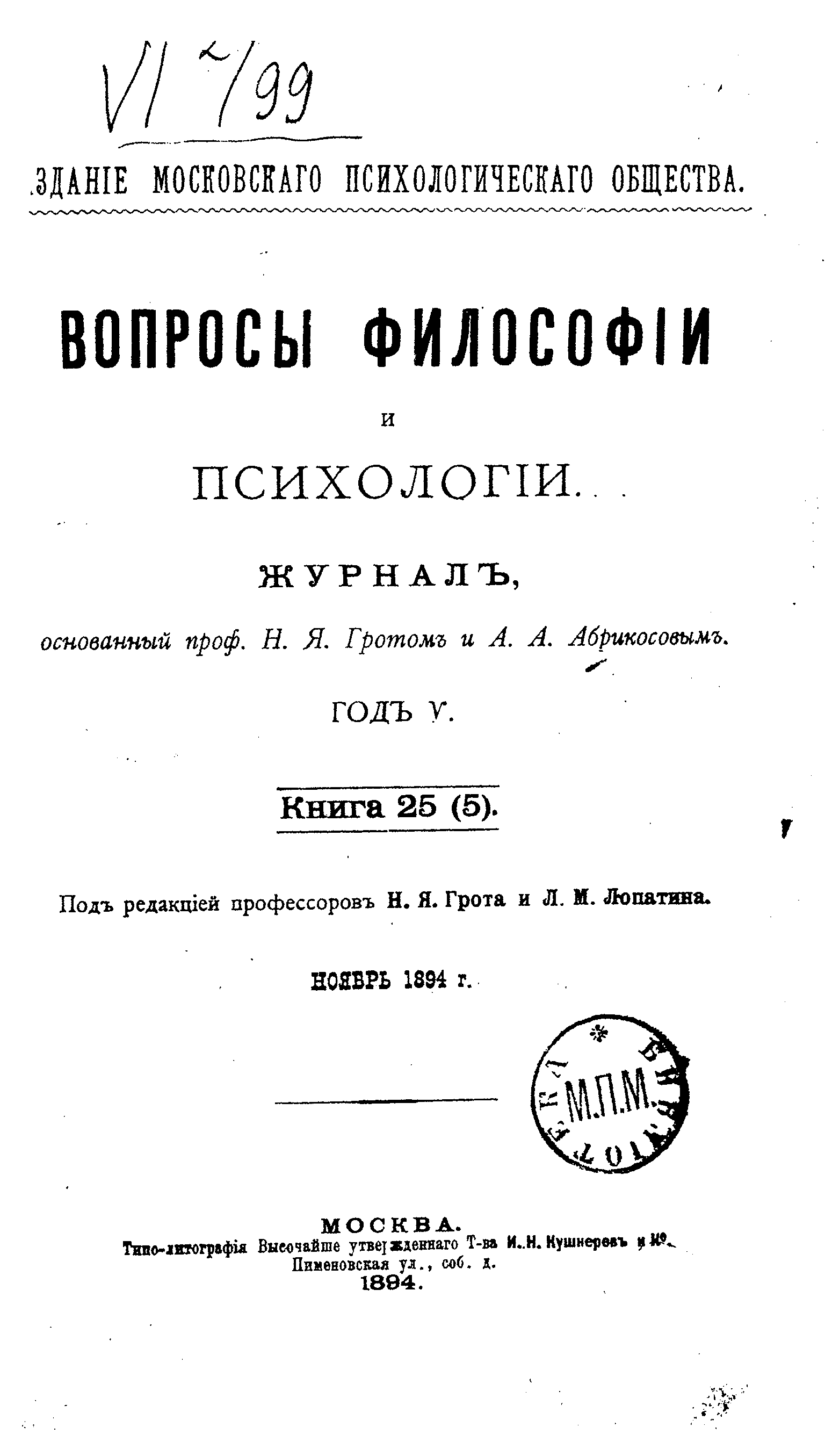 Вопросы философии и психологии. Книга 25.