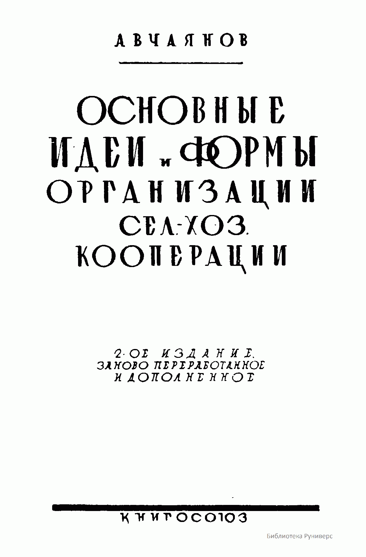 Творчество выдающегося русского экономиста-аграрника Александра Васильевича Чаянова отличается исключительным богатством и разнообразием. Оттачивая свои концепции, он развивал и дополнял их на протяжении двух десятилетий. Характерно, что Чаянов имел обыкновение работать над несколькими проблемами одновременно, последовательно публикуя различные редакции одних и тех же работ. Неудивительно, что его современники не могли охватить одним взглядом эту систему гипотез и теорий. Тем более достаточно сложен Чаянов и для сегодняшних исследователей.
