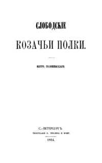 Документальное описание истории слободских казачьих полков (Острогожского, Сумского, Харьковского, Ахтырского, Изюмского и др.), за период XVII – XVIII веках. Приведены подробная хронология исторических событий, описания изменений в их структуре и службе.