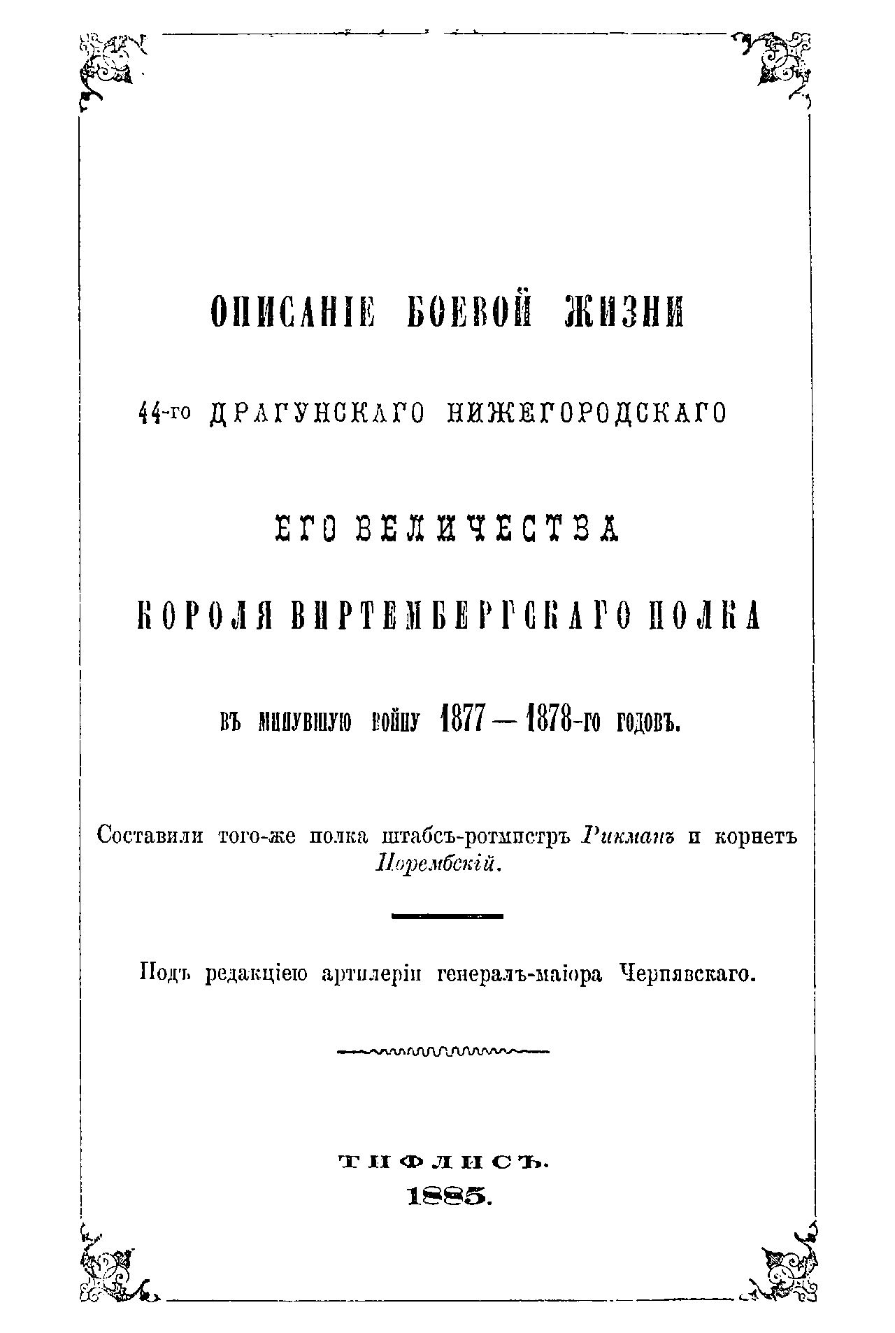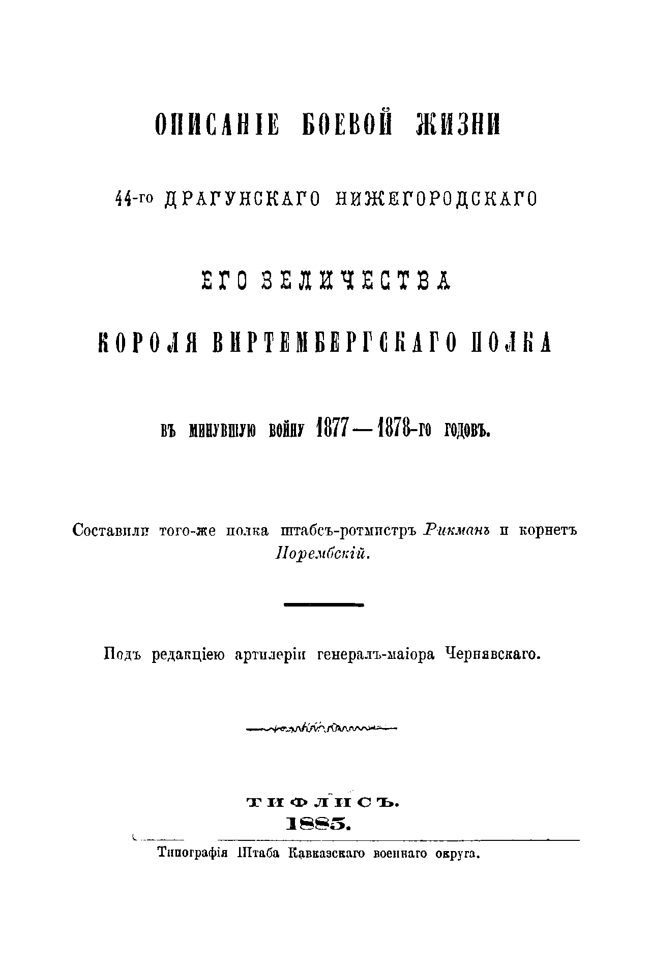 Описанiе боевой жизни 44-го Драгунскаго Нижегородскаго Его Величества Короля Виртембергскаго полка въ минувшую войну 1877-1878-го годовъ
