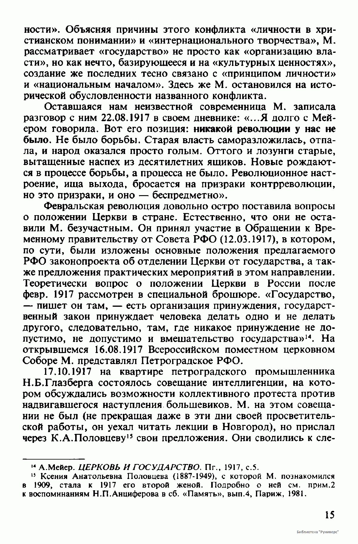 (1906 - 1999) в своих "Воспоминаниях" отметил, что "Философские сочинения" А.А.Мейера, вышедшие в Париже в 1982 г., "производят впечатление написанных как бы со знанием работ Леви-Стросса, К. Юнга, Б. Малиновского и