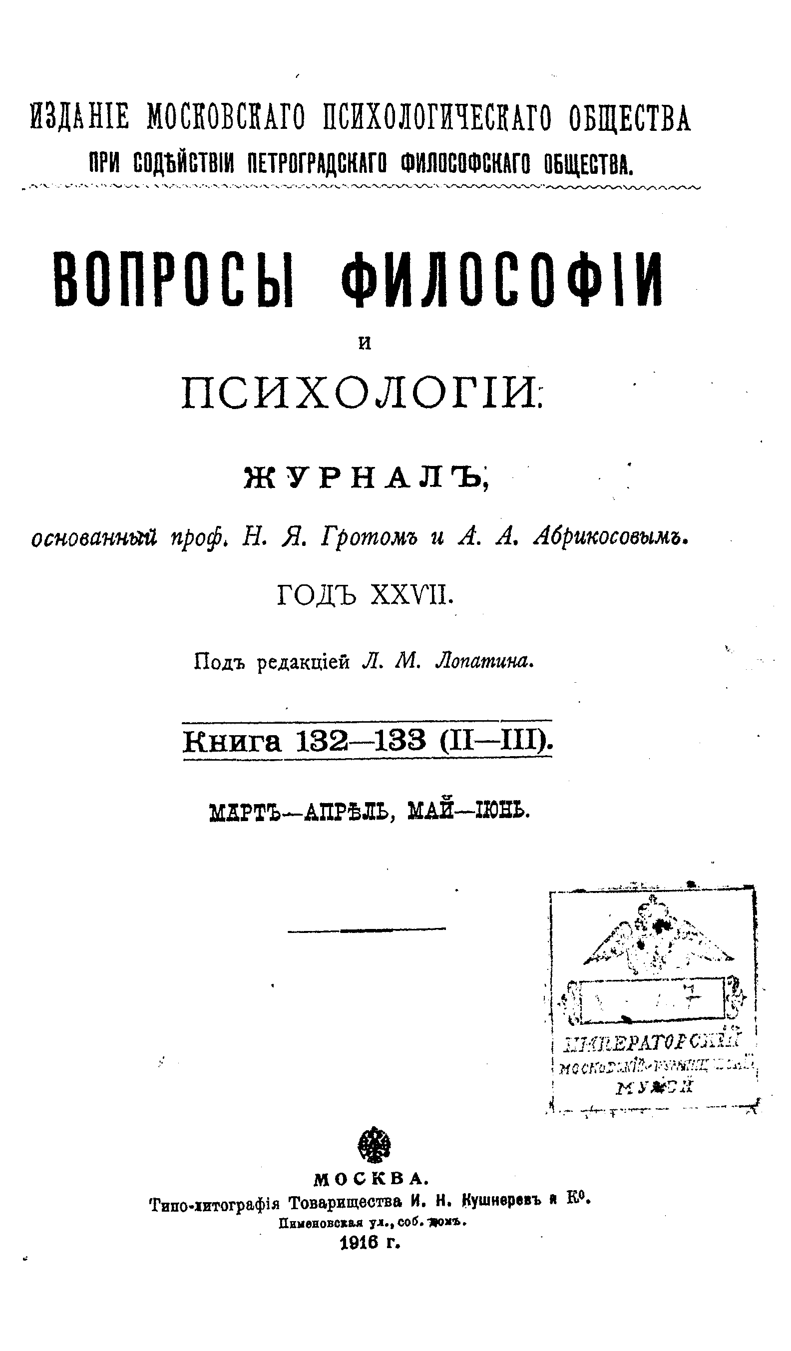 Вопросы философии и психологии. Книга 132-133.