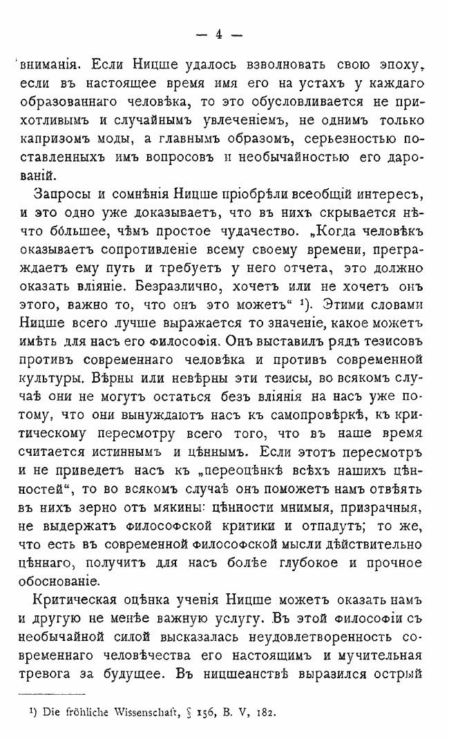 Вся философия Ницше, исходная точка которой – атеизм, а её конечный результат – отрицание человека, – это попытка преодолеть страх смерти и ответить на вопрос, стоит ли жить вообще. Автор ставит перед собой цель выяснить, как философ справился с этой задачей, и делает вывод о том, что учение Ницше, хотя во всех его произведениях чувствуется крупное философское и художественное дарование, глубина постановки философских вопросов, тонкость наблюдения и критики, богатство и яркость художественных образов, – носит на себе печать упадка философской мысли, а окончательные выводы его философии граничат с пошлостью. Это колоссальное несоответствие между затраченными силами и достигнутым результатом объясняется общим ослаблением и утомлением мысли, которое составляет характерную черту всей современной эпохи в отличие от дней высшего процветания философии, когда её одушевляла вера в разум и мысль, лежащую в основе существования.