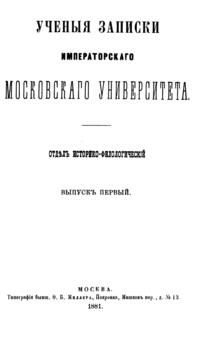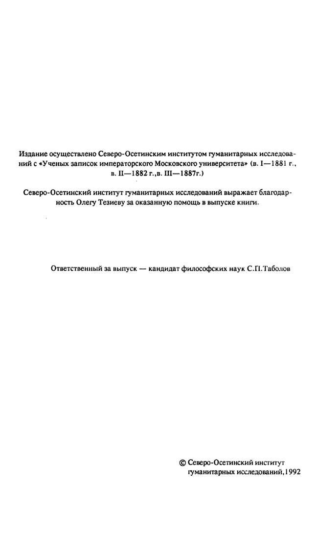 Издание осуществлено Северо-Осетинским институтом гуманитарных исследований с «Ученых записок императорского Московского университета» (в. I — 1881 г., в. II — 1882 г., в. III — 1887 г.).