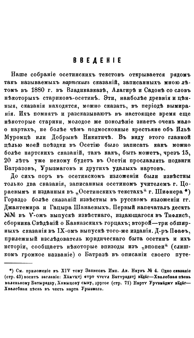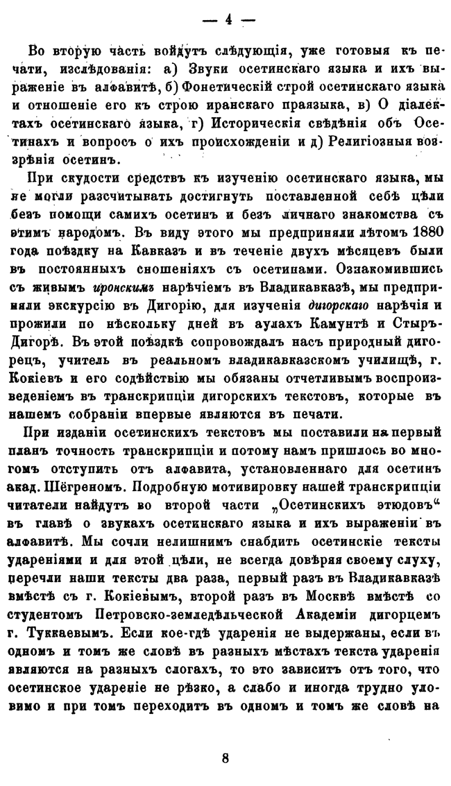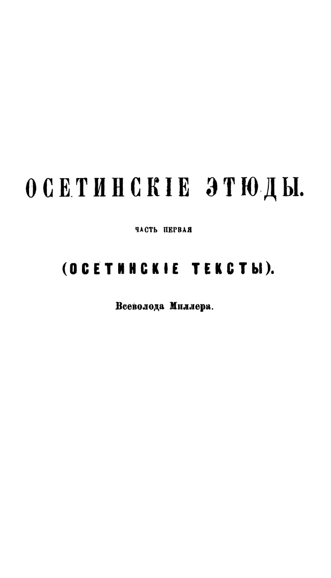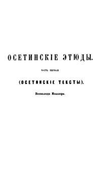 Под общим названием «Осетинские этюды» историко-филологическим отделом Университета был издан ряд материалов и исследований, имеющих целью изучение языка осетин, их этнических сказаний, религиозных воззрений и их прошлого. «Осетинские этюды» — результат двухлетних занятий осетинским языком и поездкой в Осетию, предпринятой летом 1880 года.