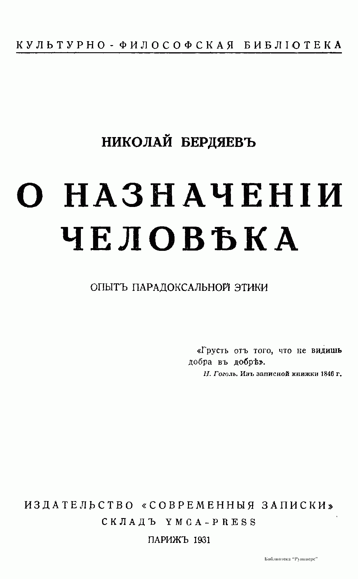 О назначении человека. Опыт парадоксальной этики