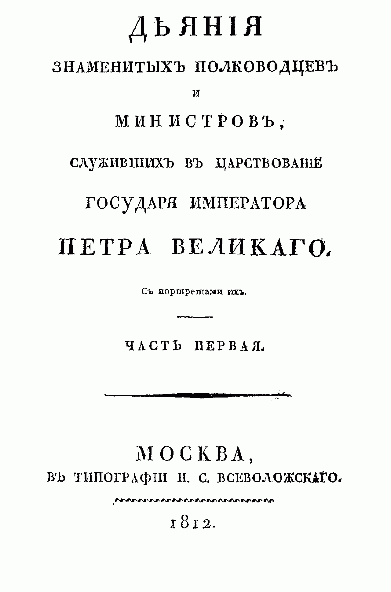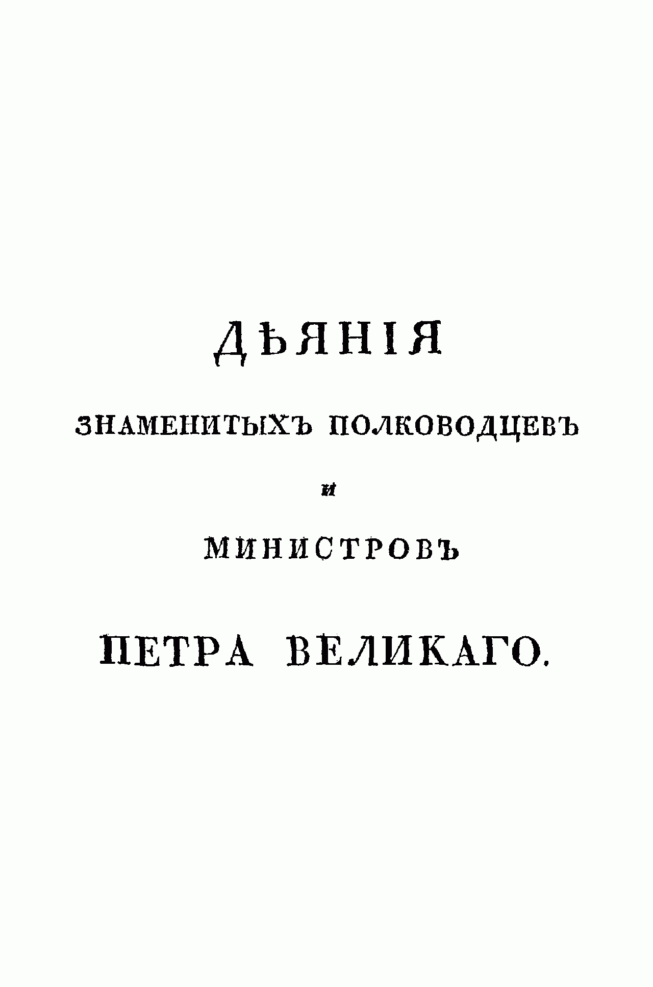 Дѣянiя знаменитыхъ полководцевъ и министровъ, служившихъ въ царствованiе Государя Императора Петра Великаго