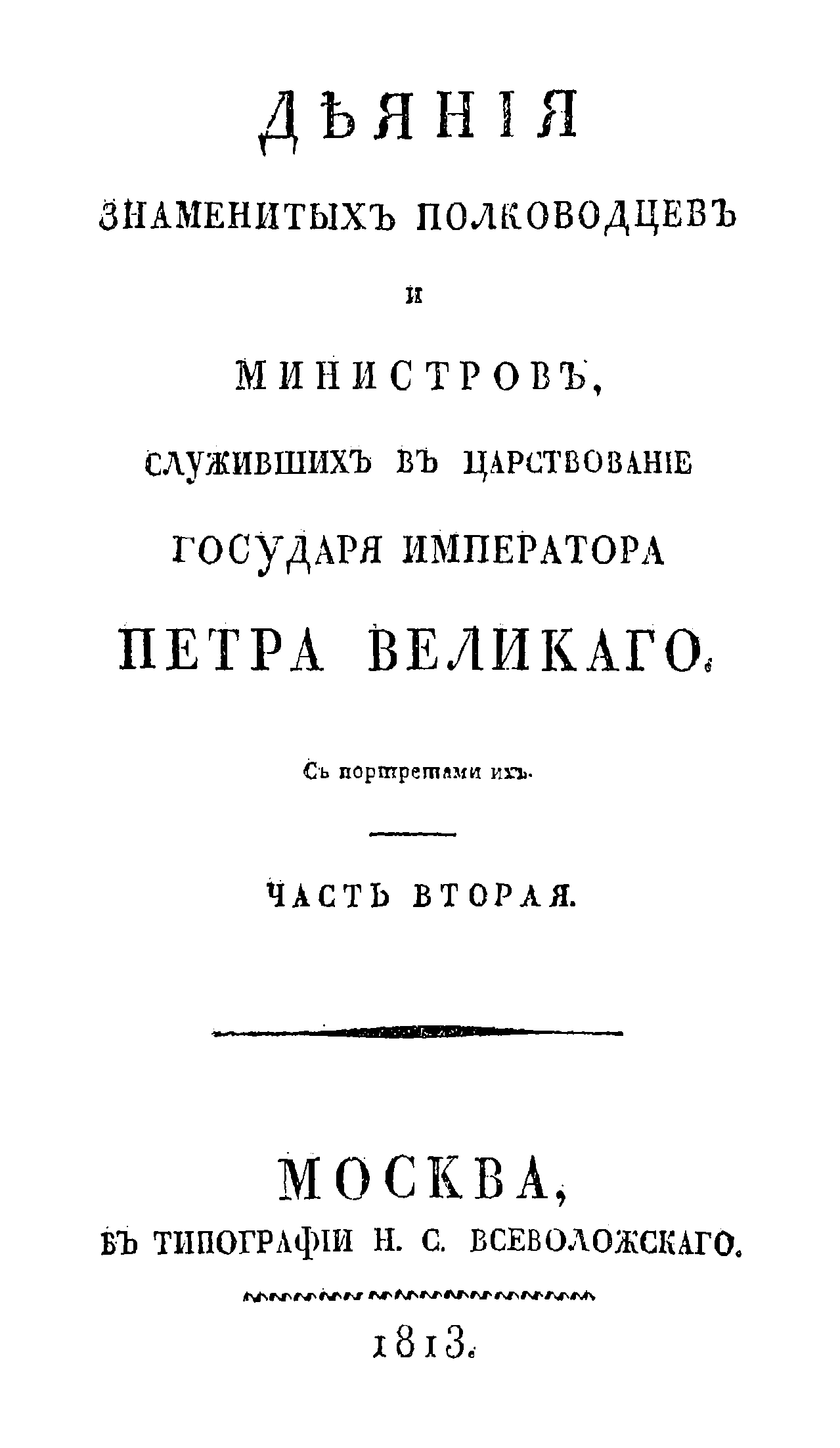 Дѣянiя знаменитыхъ полководцевъ и министровъ, служившихъ въ царствованiе Государя Императора Петра Великаго. Часть вторая