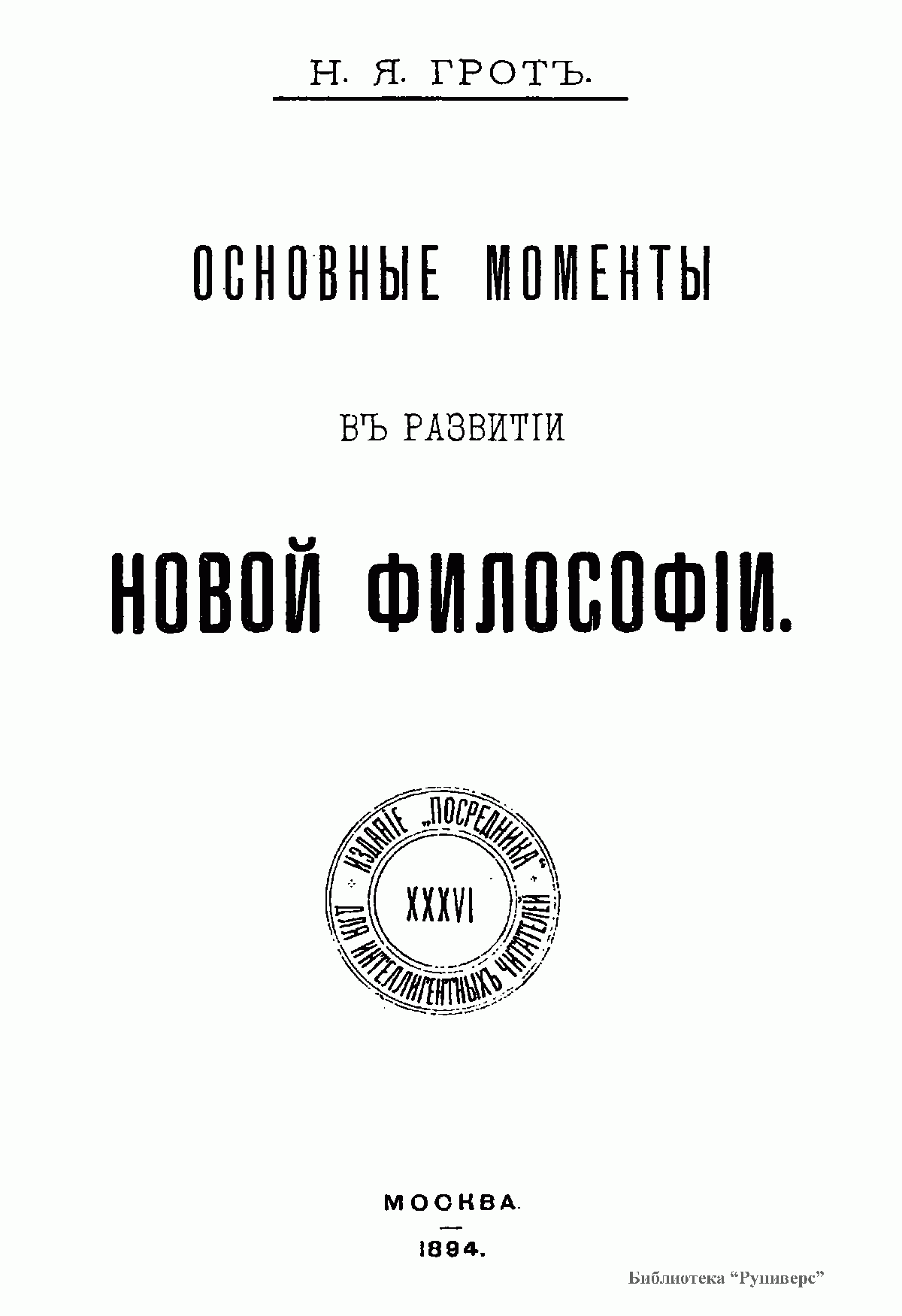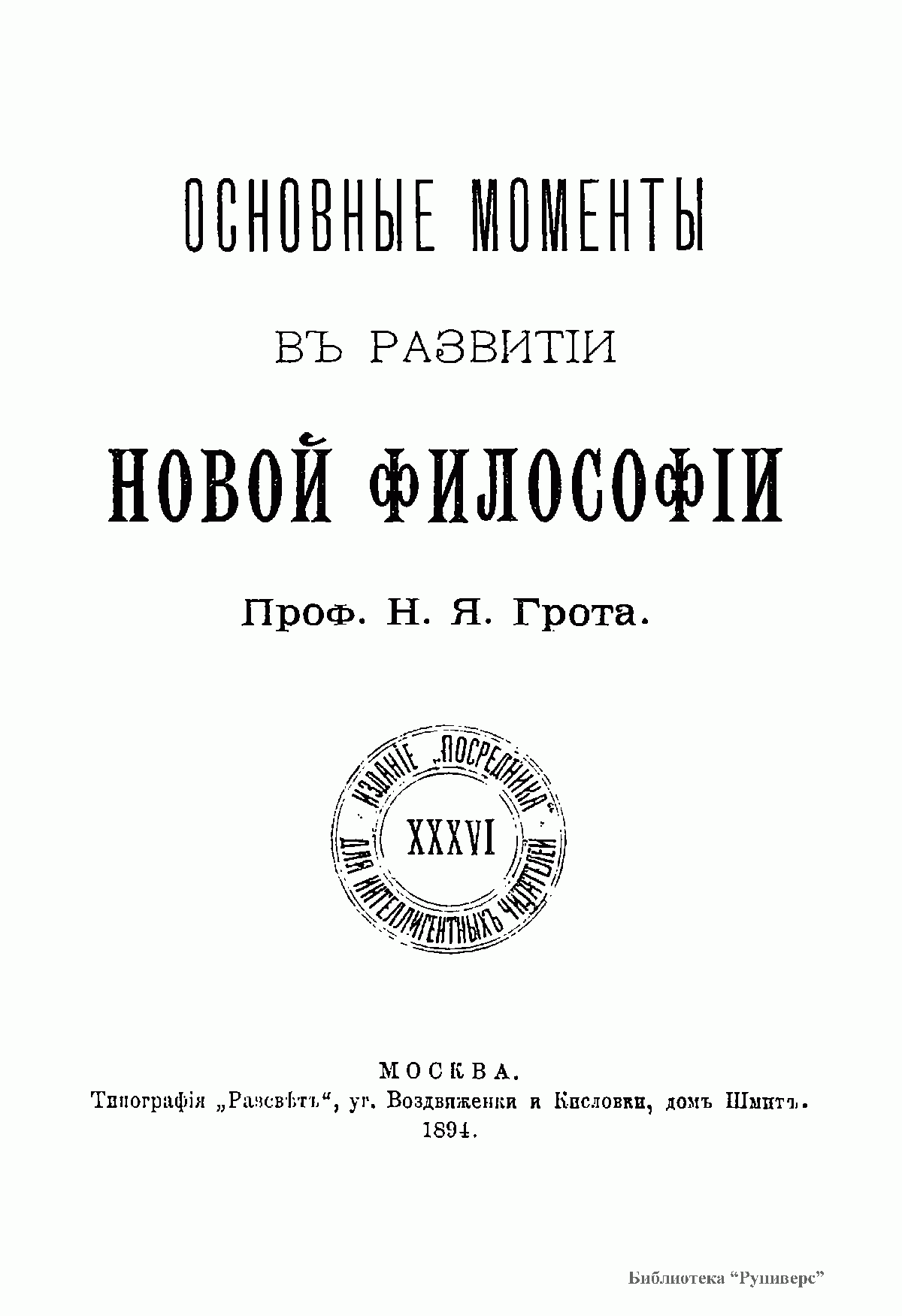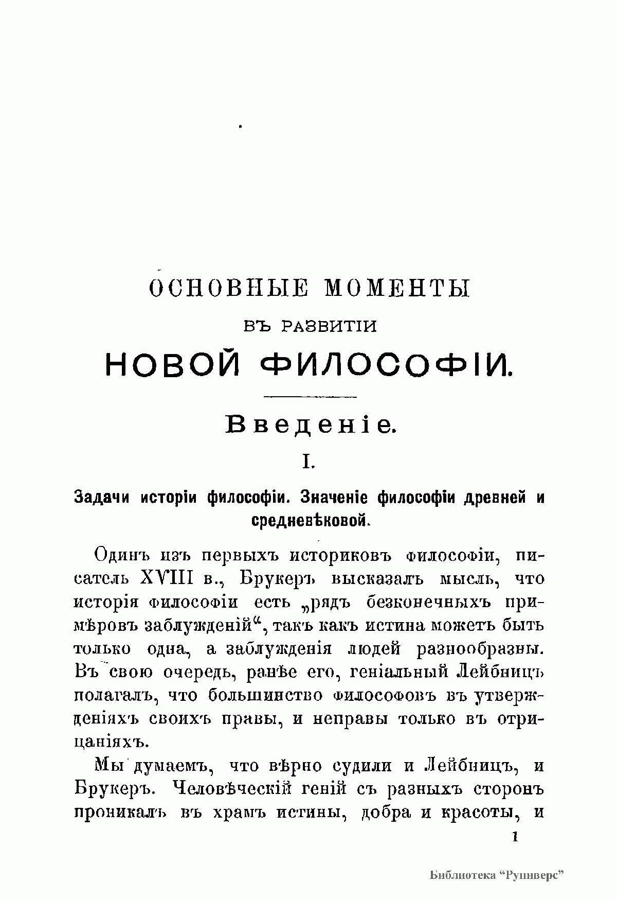 Основные моменты въ развитiи новой философiи