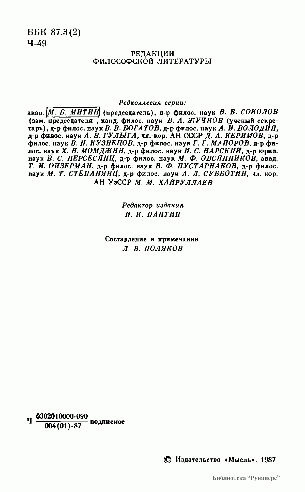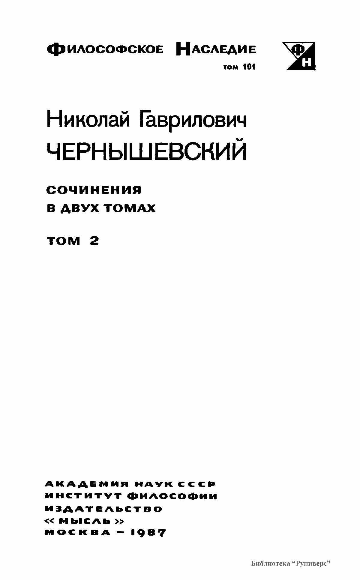 В первый том собрания философских сочинений Н. Г. Чернышевского включены его работы 50-х годов. Магистерская диссертация «Эстетические отношения искусства к действительности», а также цикл работ, примыкающих к ней тематически, дают представление об эстетической концепции мыслителя. Ряд произведений середины 50-х годов раскрывает также процесс формирования его концепции философии истории. Во второй том издания входят работы 60—80-х годов, которые знакомят читателя с социалистическо-утопическими взглядами Чернышевского, его концепцией антропологического материализма и философско-исторической системой.