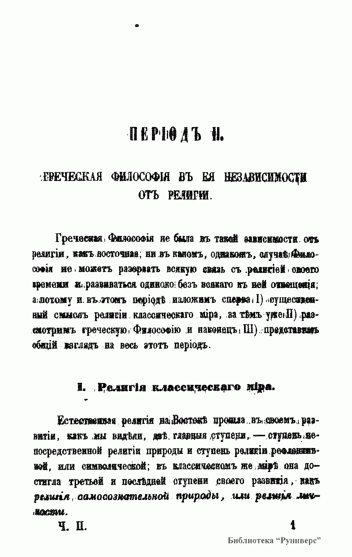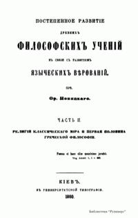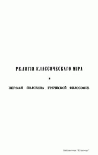 Постепенное развитiе древнихъ философскихъ ученiй въ связи съ развитiемъ языческихъ вѣрованiй. Часть II. Религiя классическаго мiра и первая половина греческой философiи