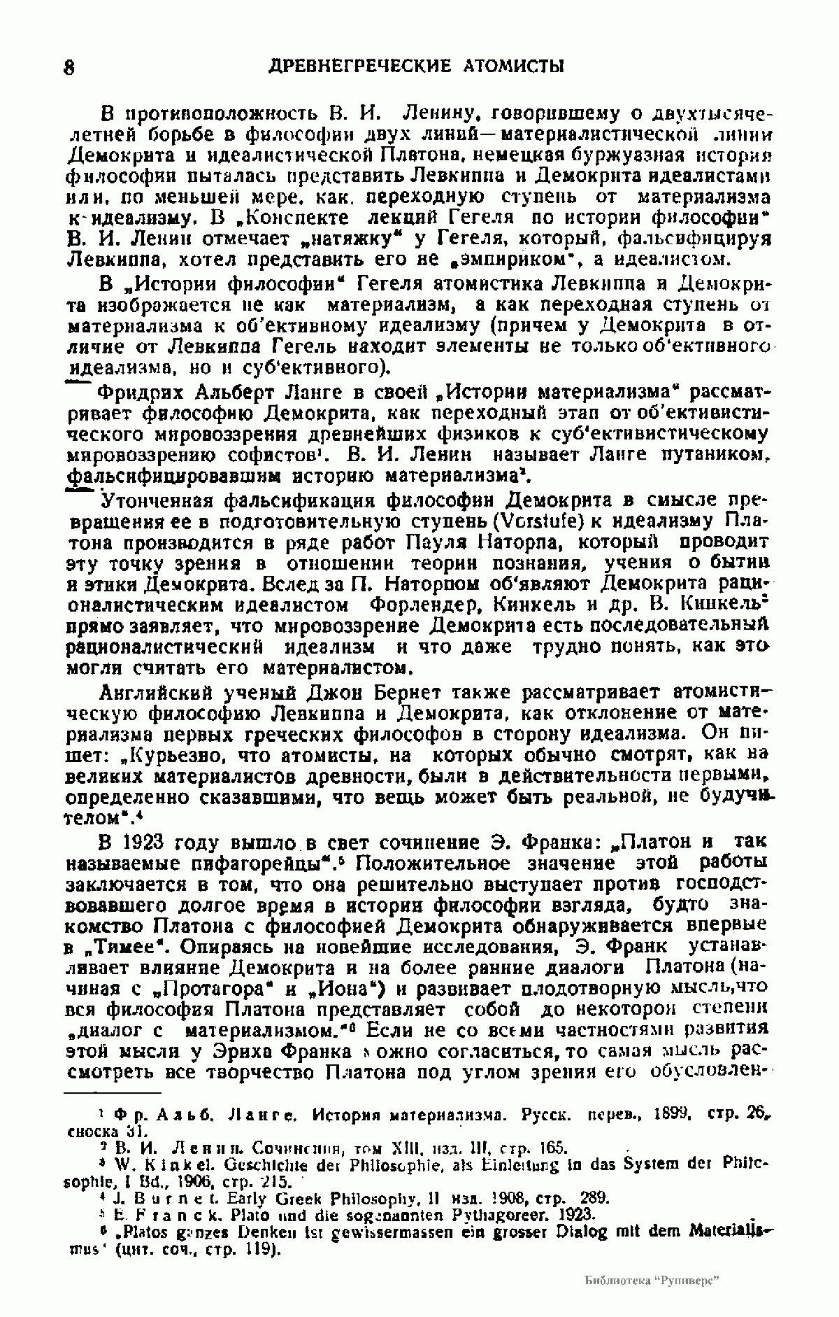 Предлагаемая книга авторитетнейшего специалиста по античности А.О.Маковельского "Древнегреческие атомисты" вышла в 1946 году в Баку и принесла ее автору мировое признание. Вокруг исторического существования философа Левкиппа (ок. 500-440 гг. до нашей эры) велись споры, и высказывалась догадка, что это имя было псевдонимом молодого Демокрита. Однако исследования Дильса и Зеллера, а также Маковельского подтвердили его историческое существование.