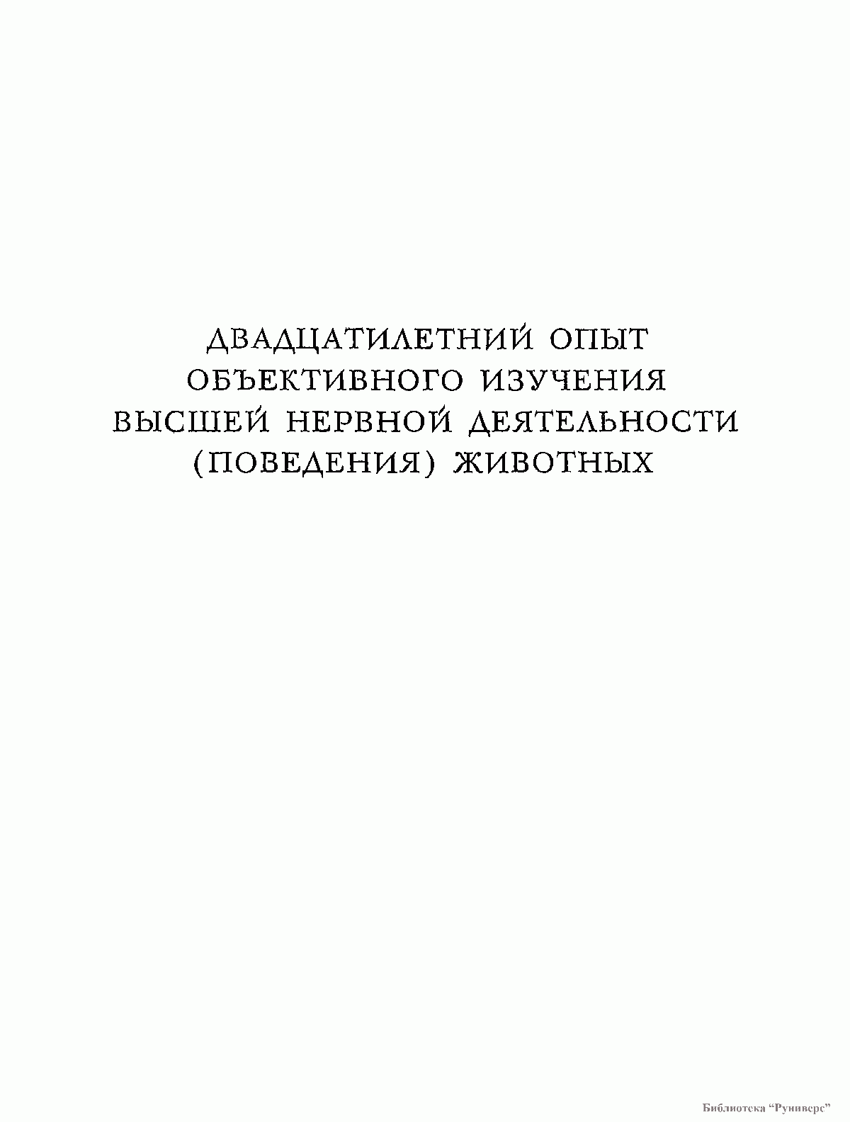 Двадцатилетний опыт объективного изучения высшей деятельности (поведения) животных