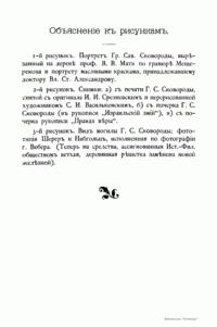 , портрет философа, его могилы, образец почерка. Все эти материалы, вместе с работами самого Сковороды, вышли в составе 7-го тома Сборника Харьковского филологического общества.