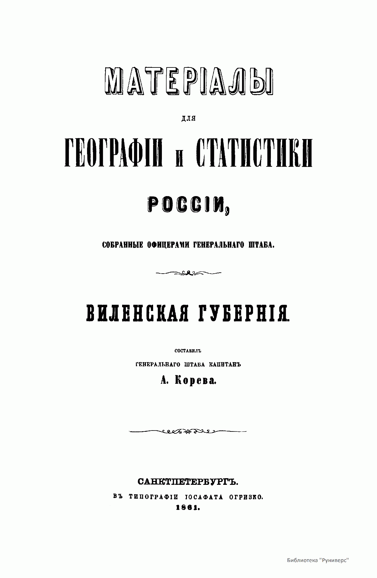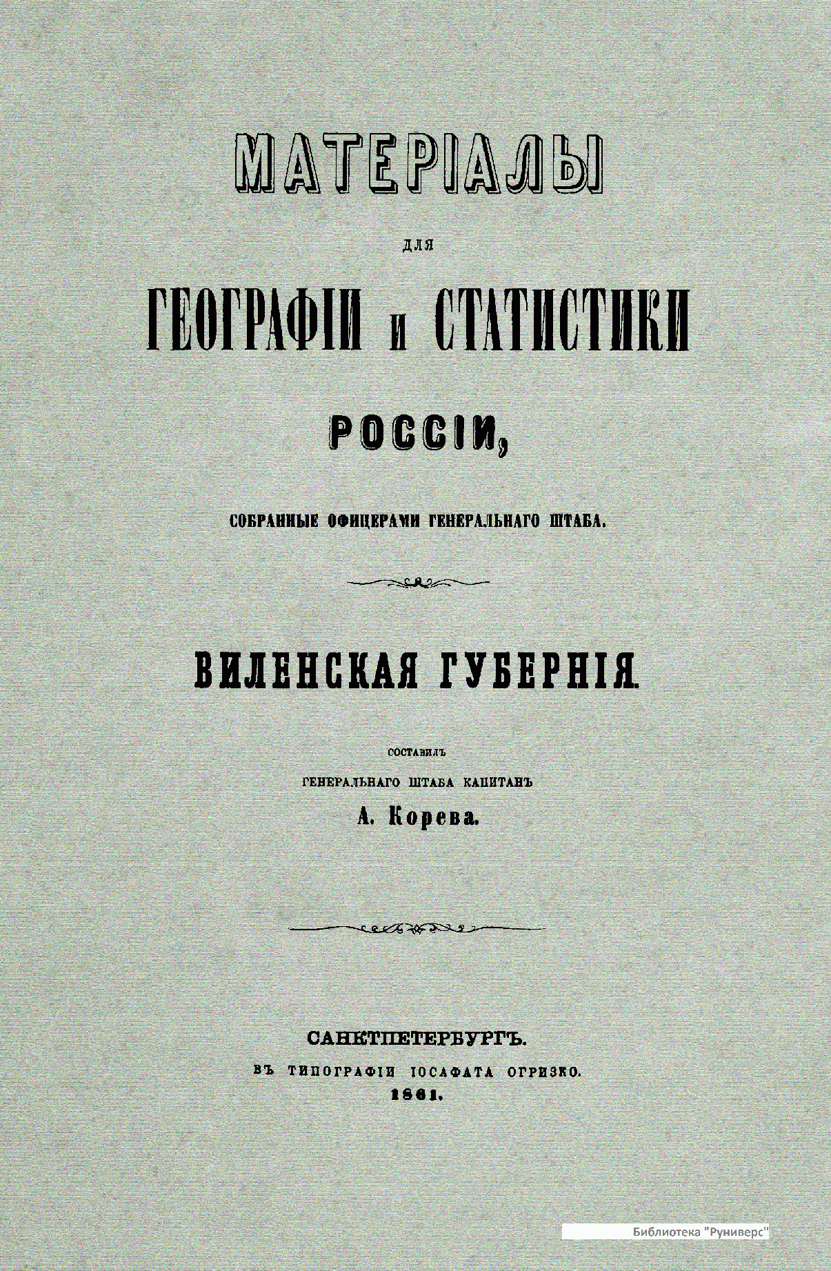 Матерiалы для географiи и статистики Россiи, собранные офицерами Генеральнаго штаба. Виленская губернiя