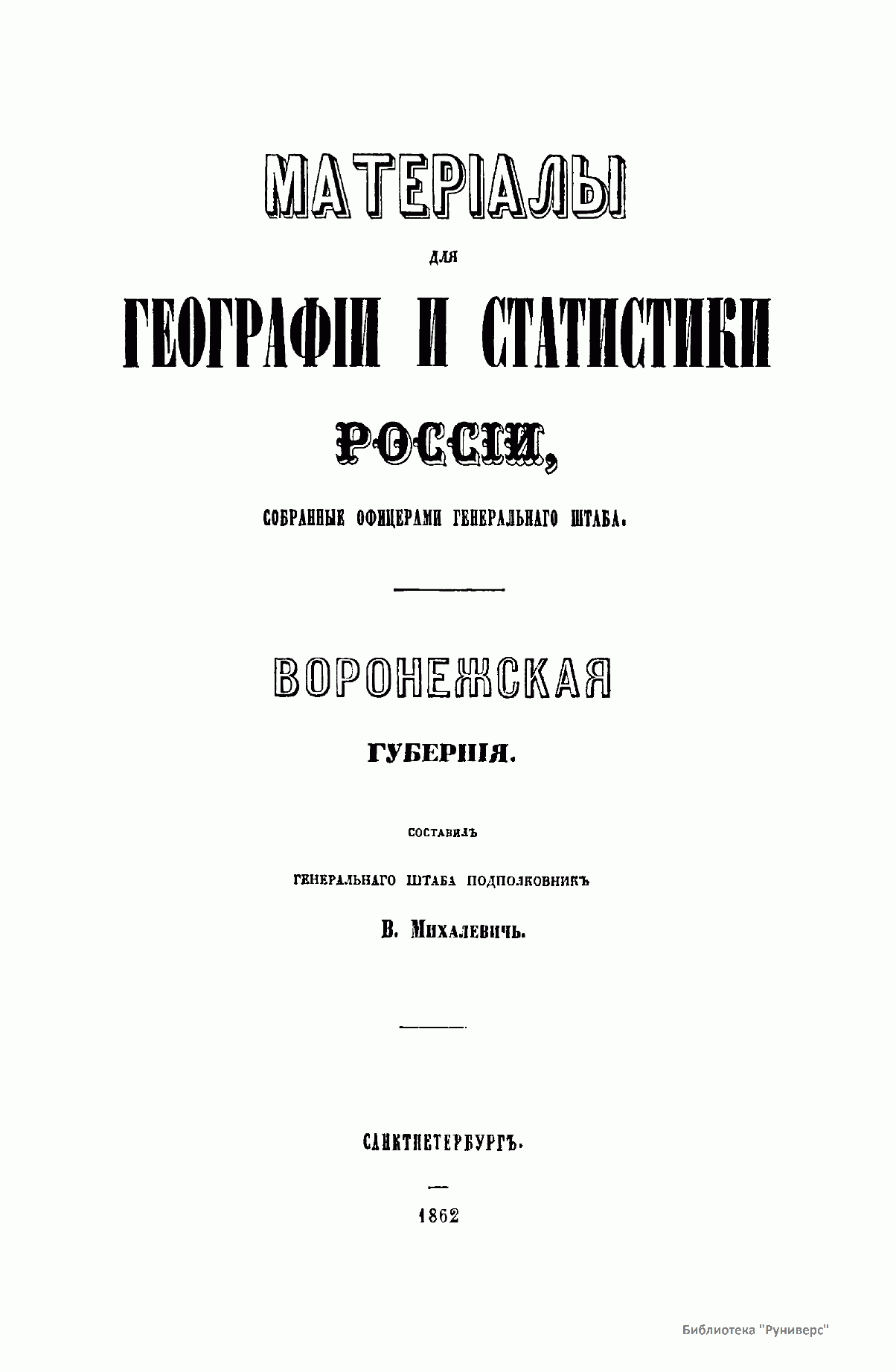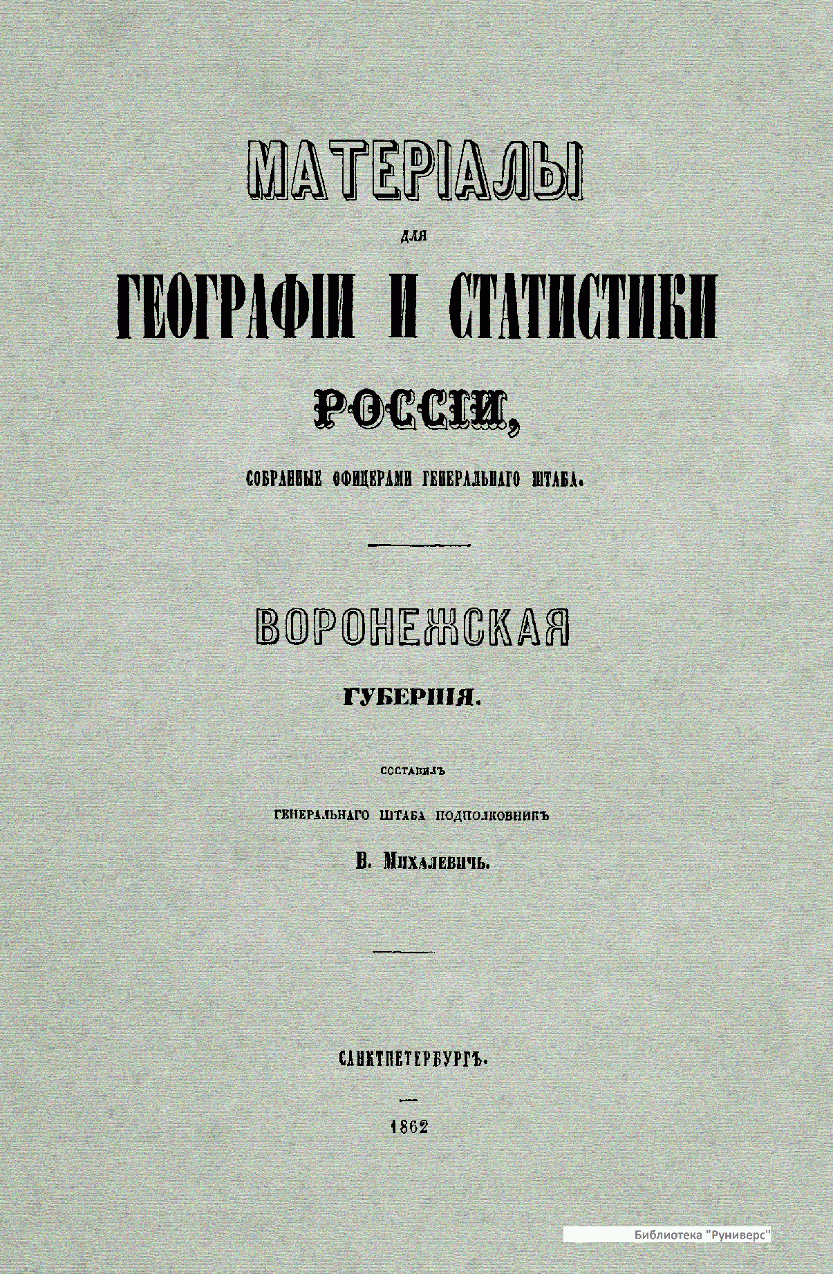 Материалы для географии и статистики России, собранные офицерами Генерального штаба. Воронежская губерния