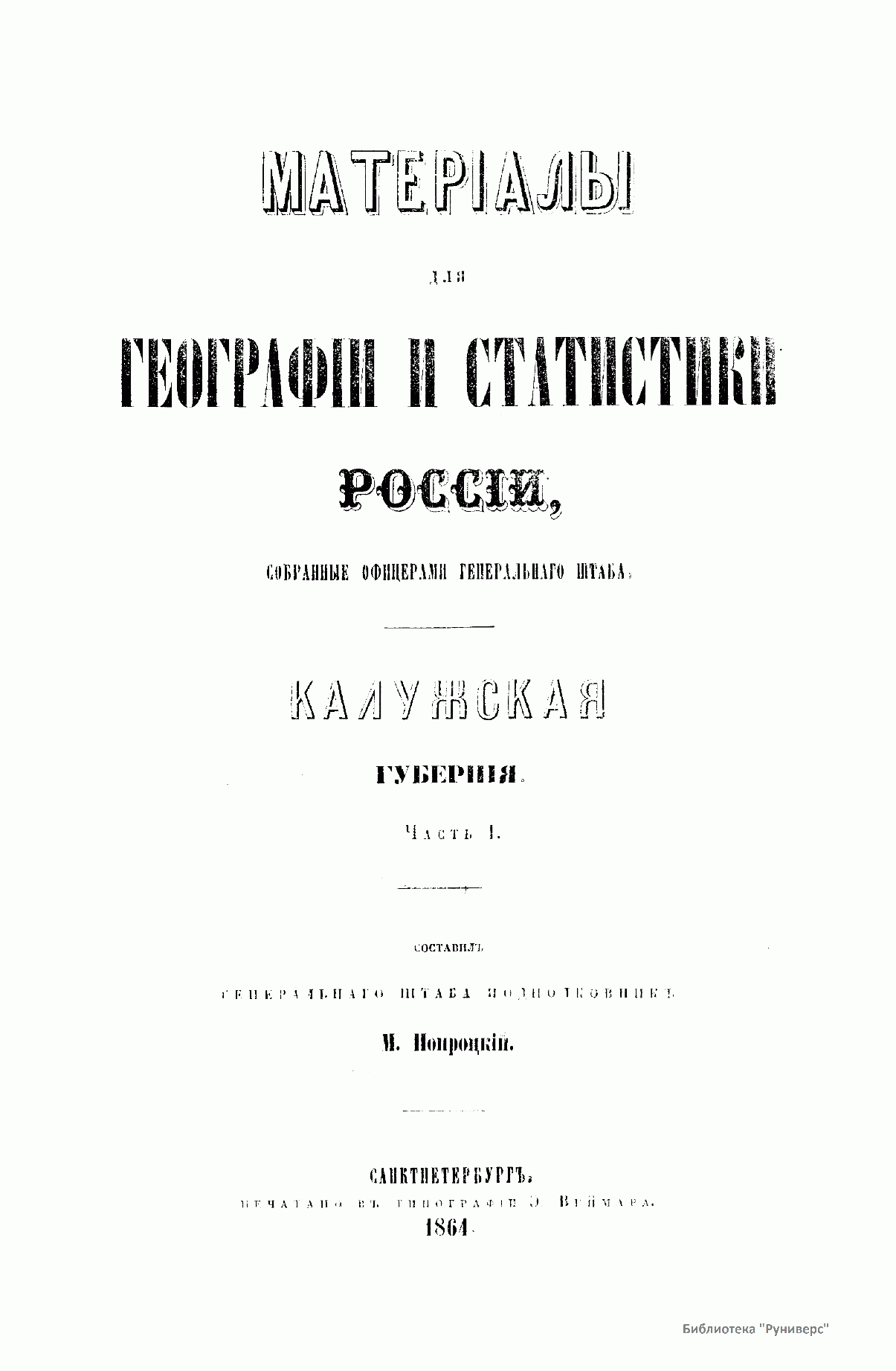 Матерiалы для географiи и статистики Россiи, собранные офицерами Генеральнаго штаба. Калужская губернiя. Часть 1