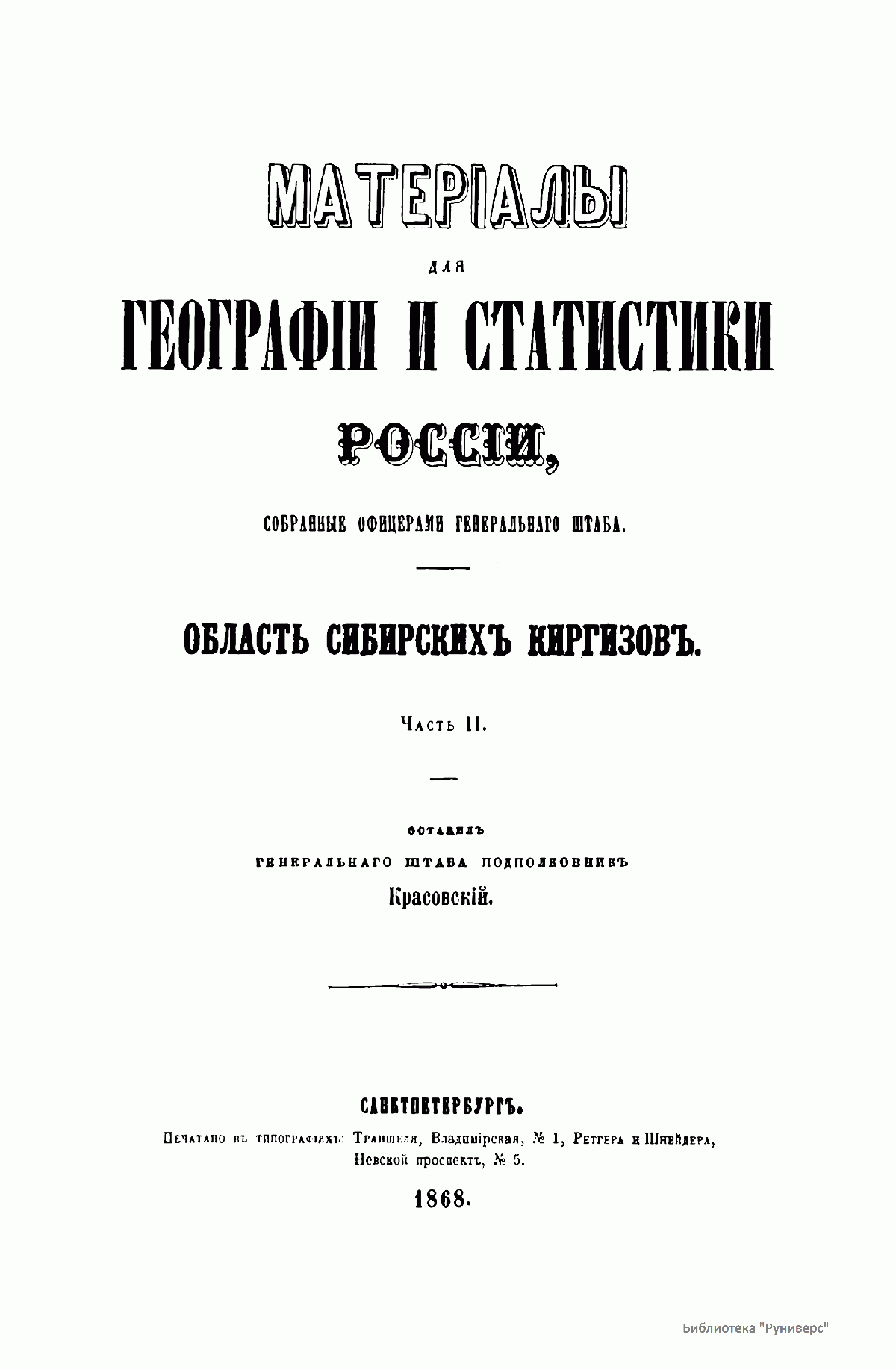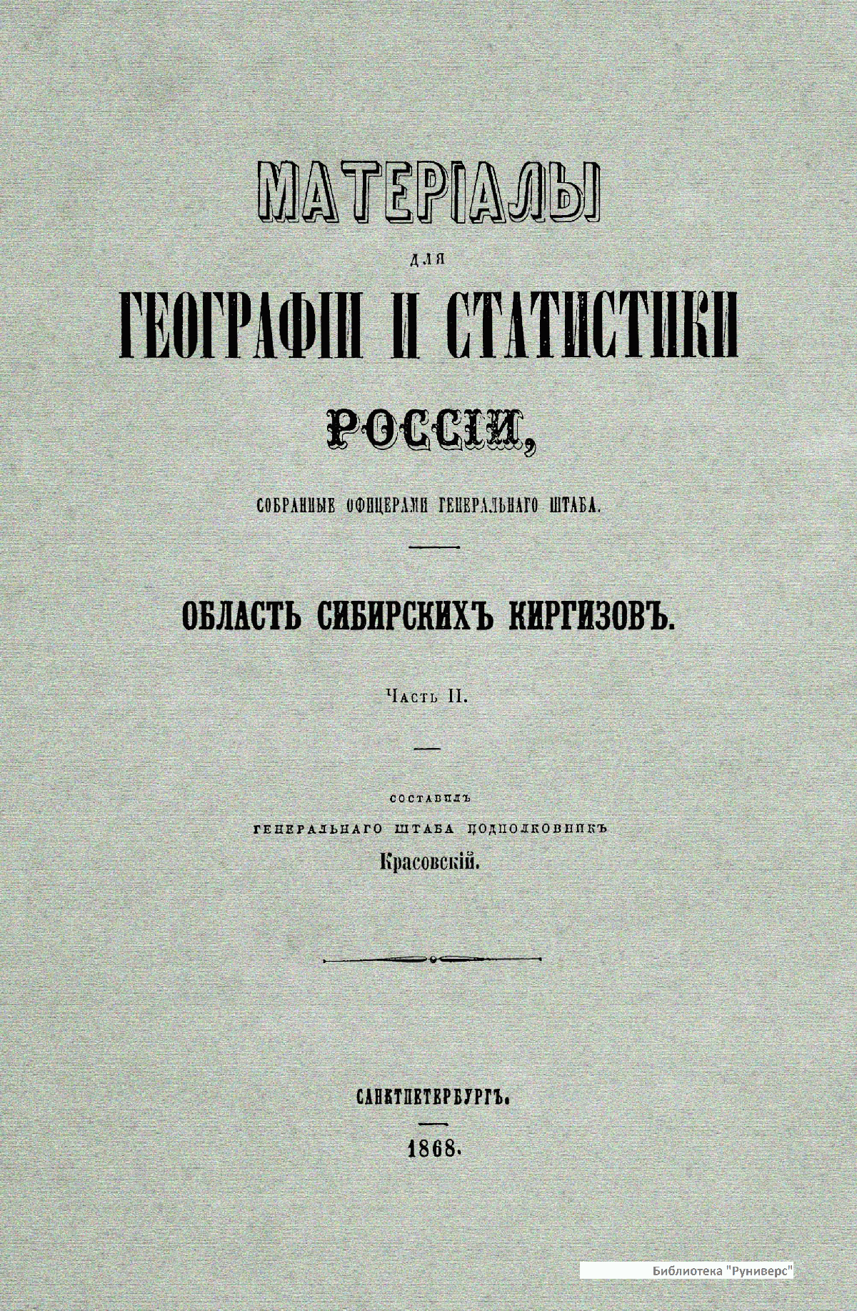Материалы для географии и статистики России, собранные офицерами Генерального штаба. Область сибирских киргизов. Часть 2