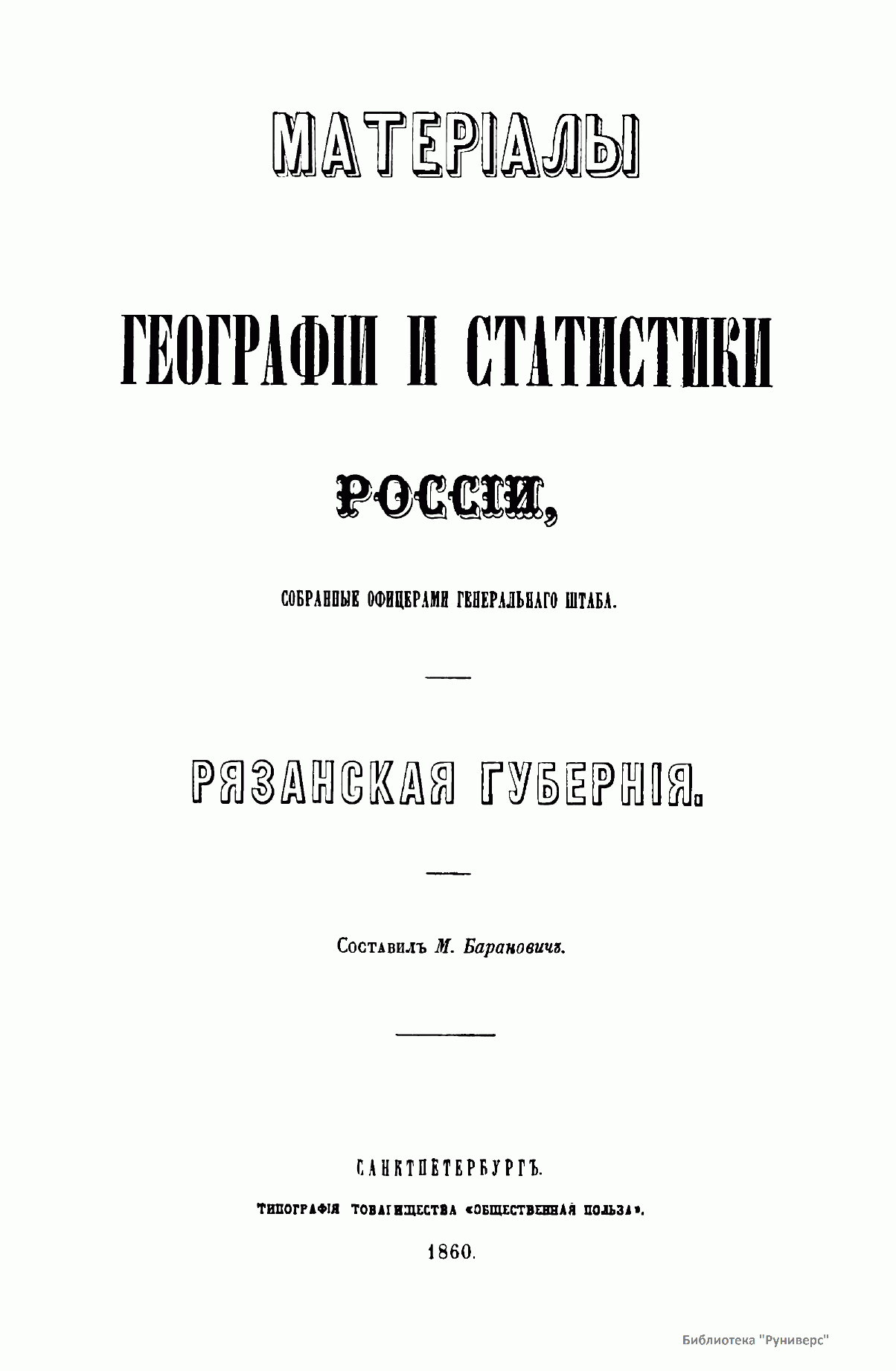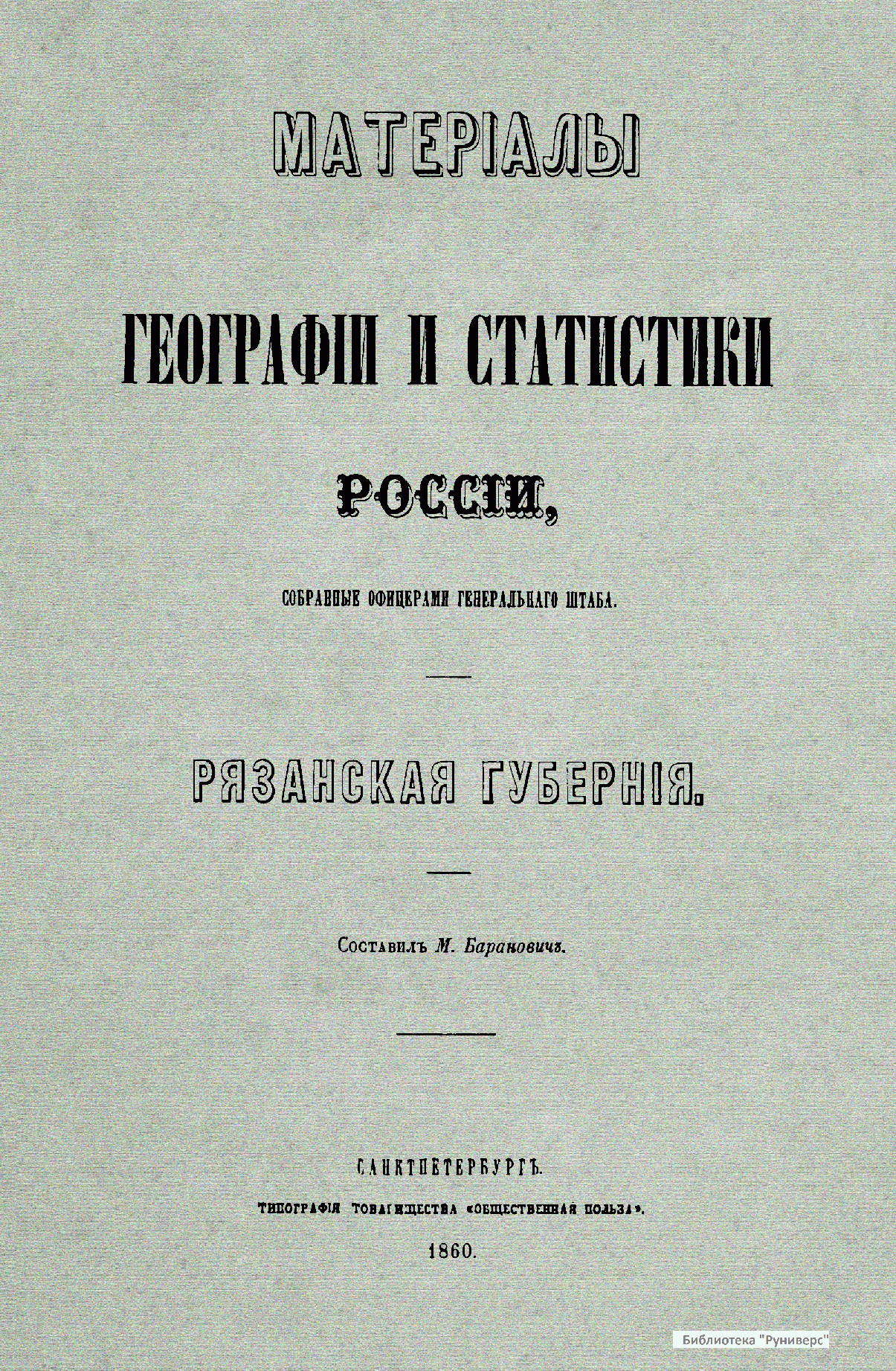 Матерiалы для географiи и статистики Россiи, собранные офицерами Генеральнаго штаба. Рязанская губернiя